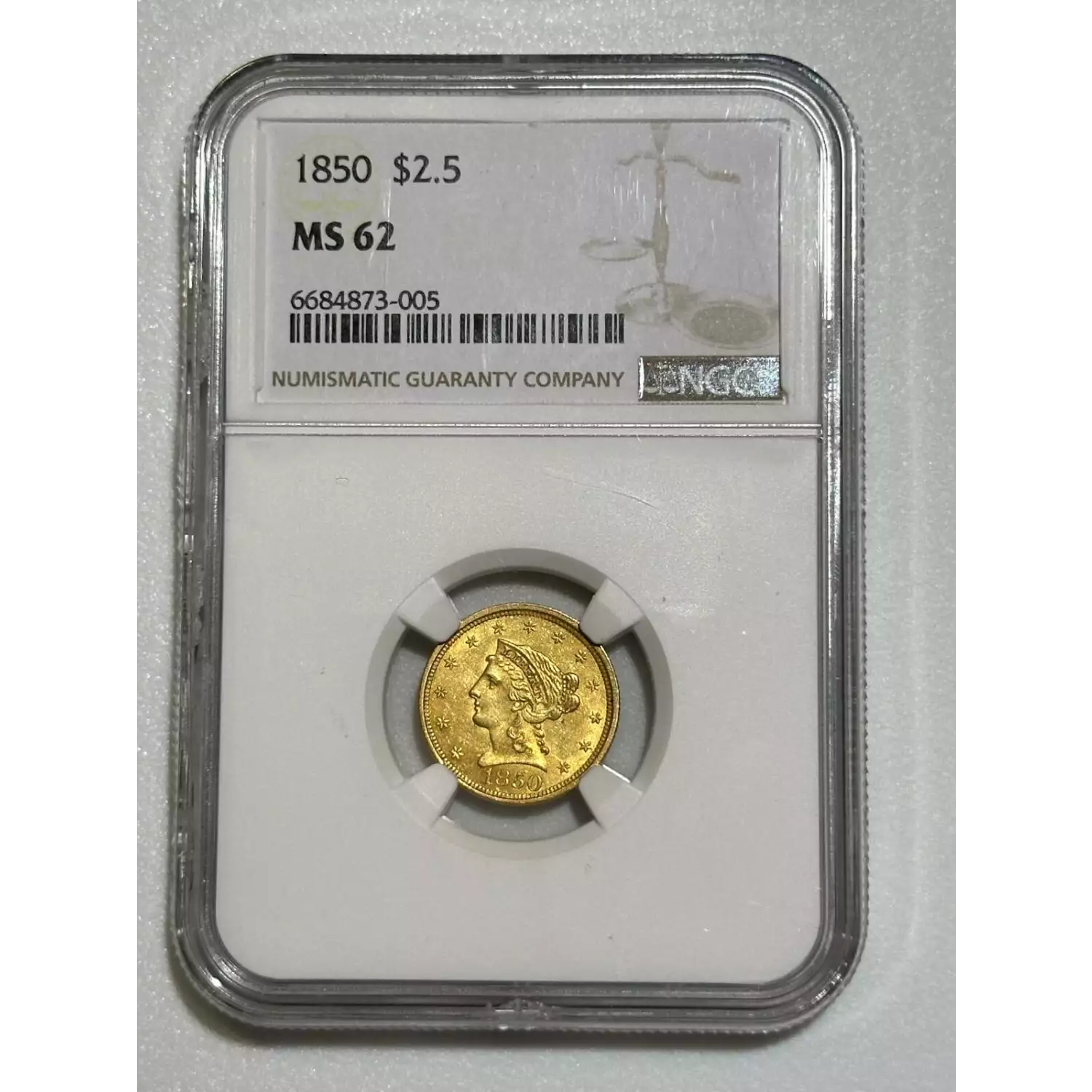 1850 $2.50 Gold Liberty Head Quarter Eagle NGC MS-62