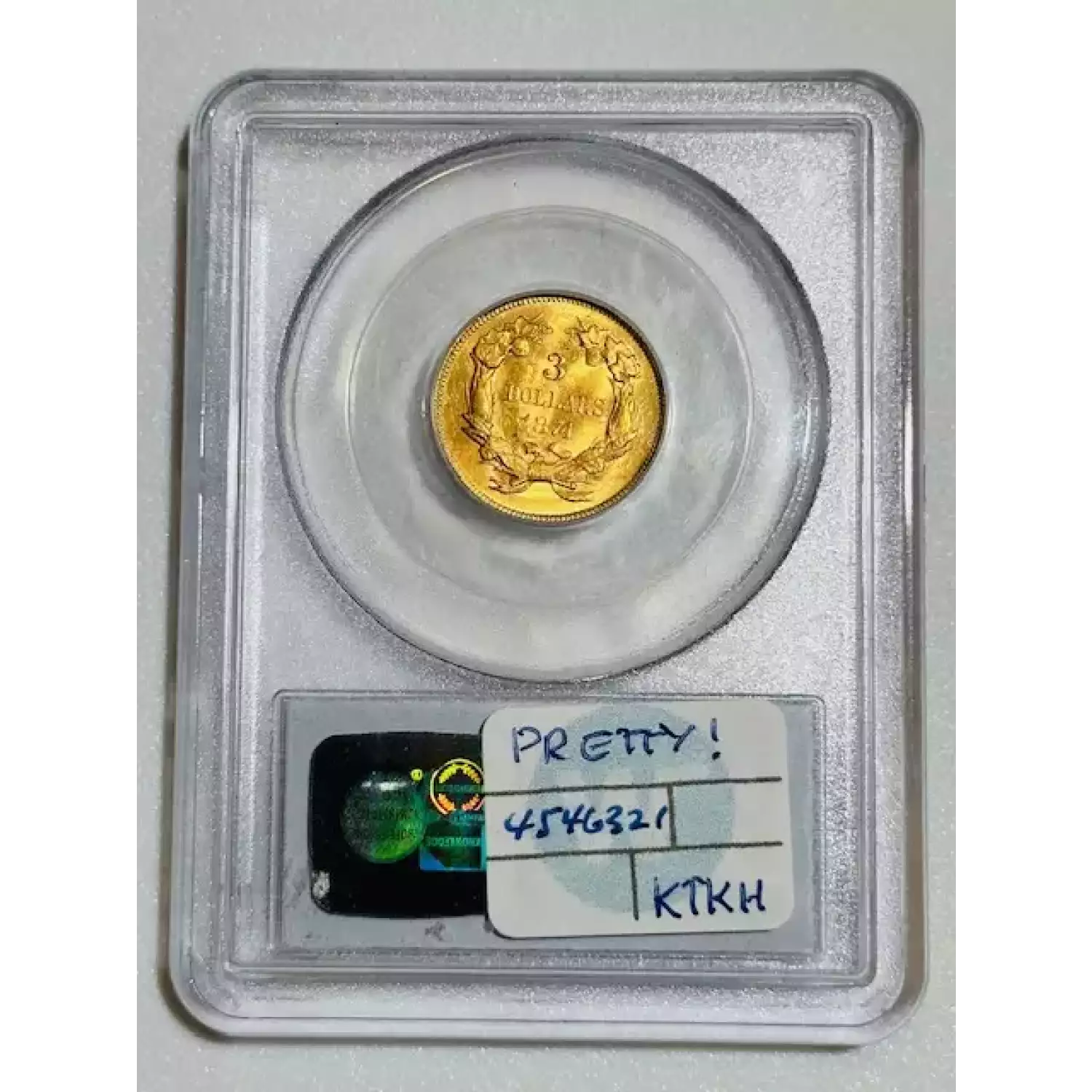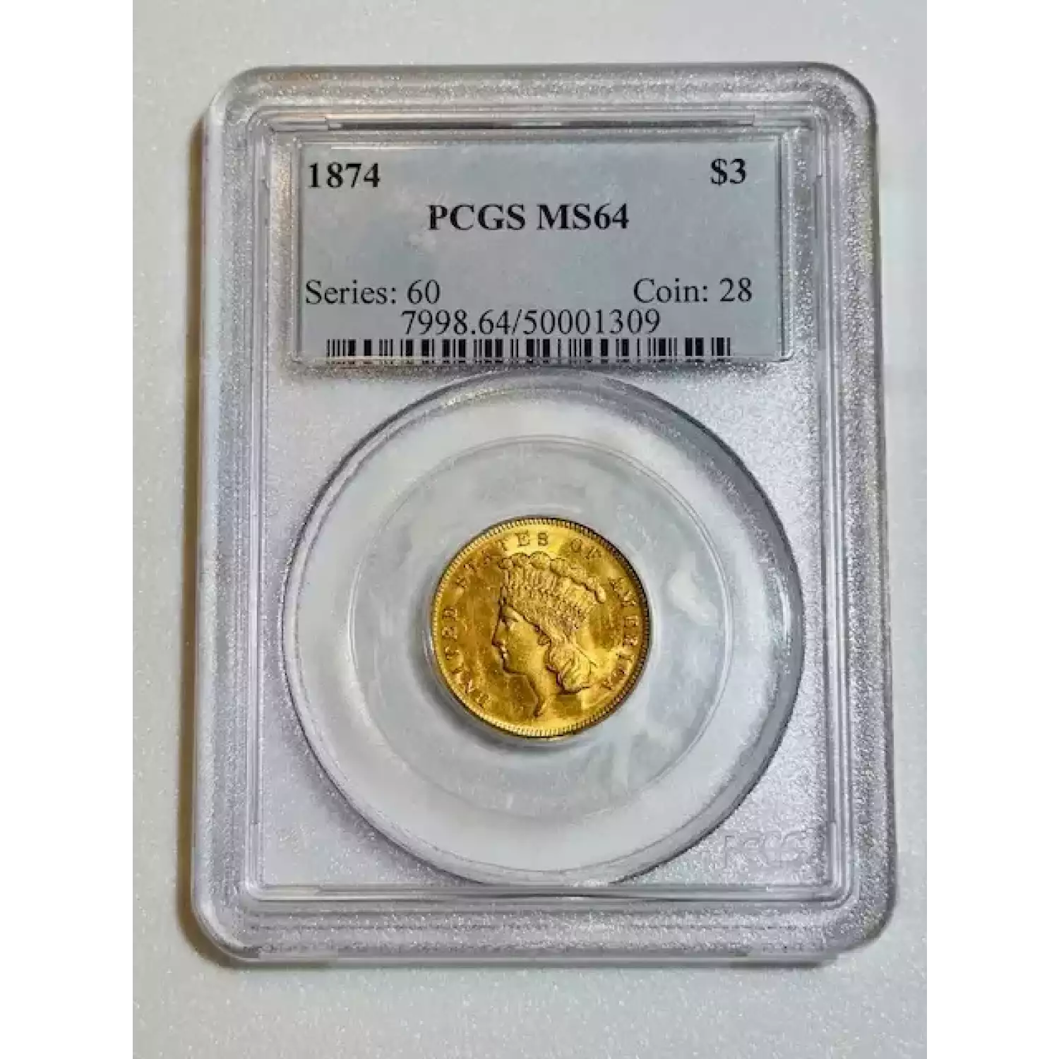1874 Gold Three Dollars $3 Indian Princess Head PCGS MS-64 Very Pretty!