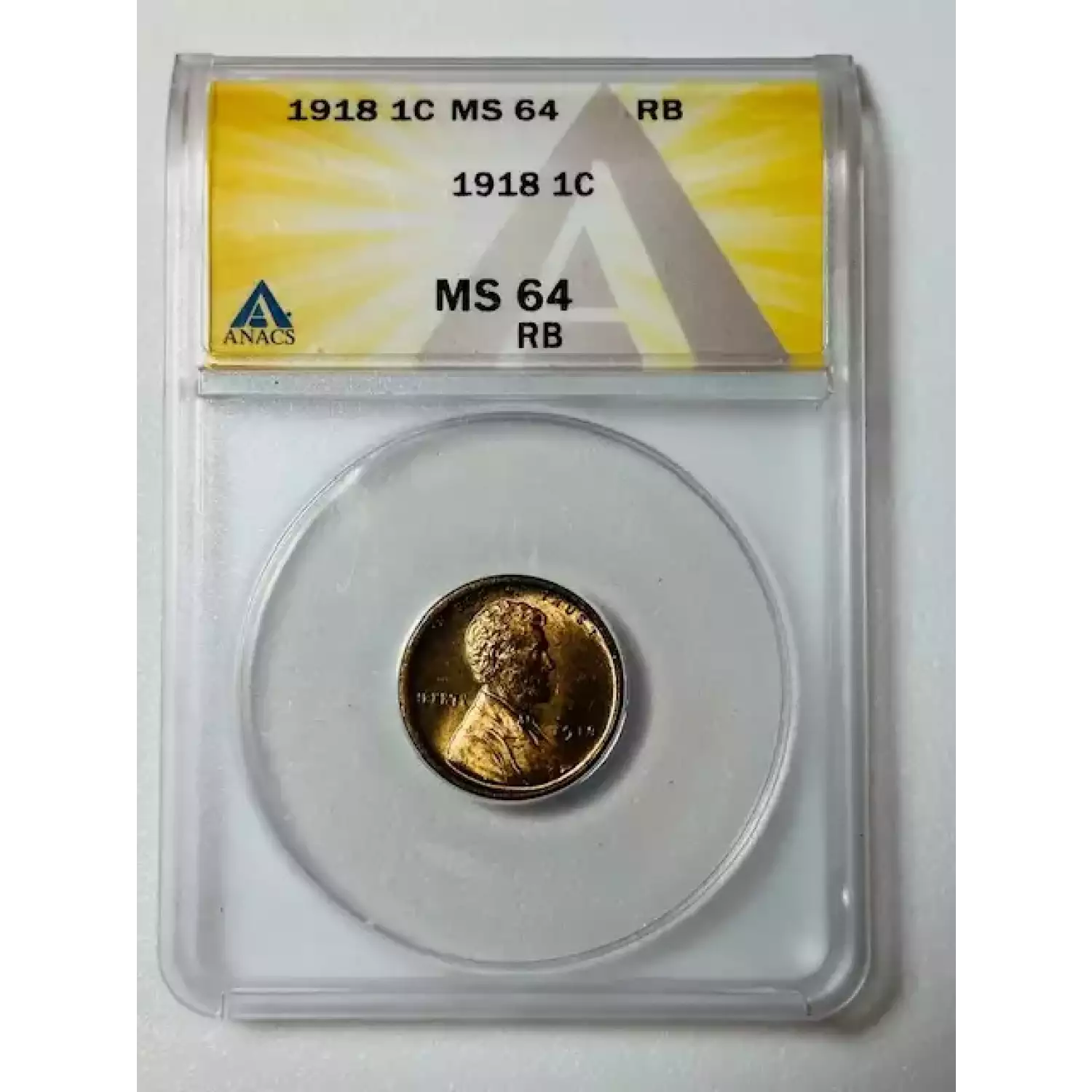 1918 Small Cents Lincoln, Wheat Ears Reverse ANACS MS-64 Red Brown