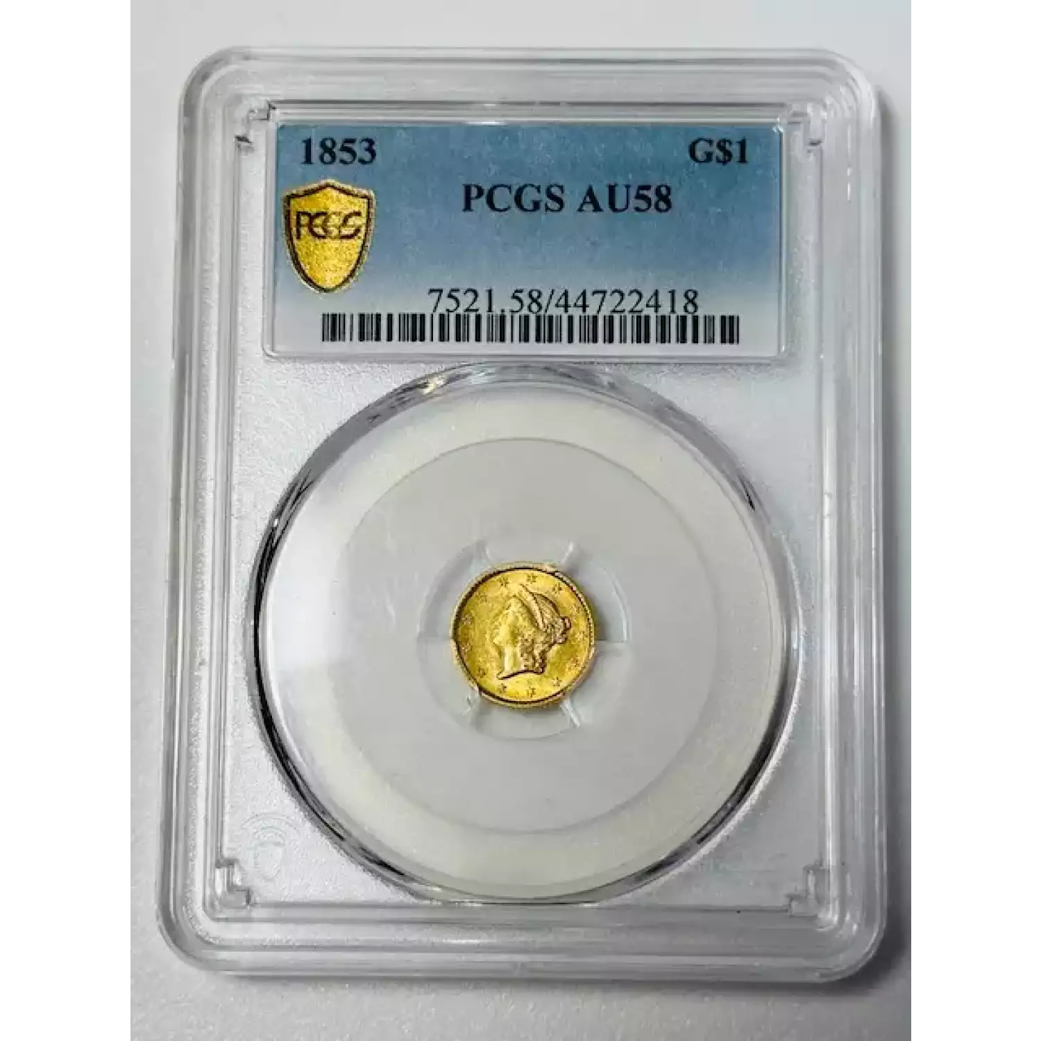 1853 Gold Dollars Liberty Head PCGS AU-58