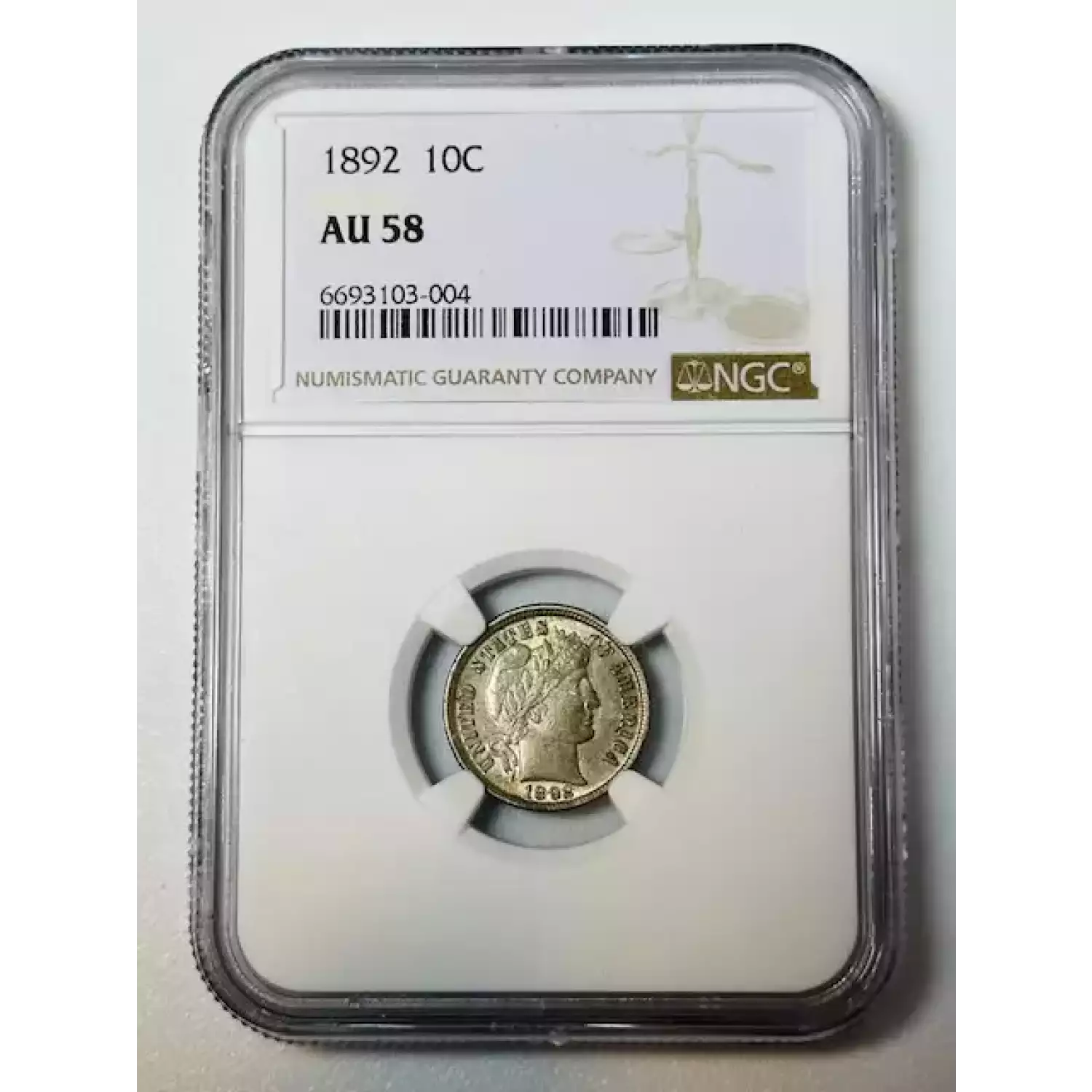 1892 Barber Dime NGC AU-58
