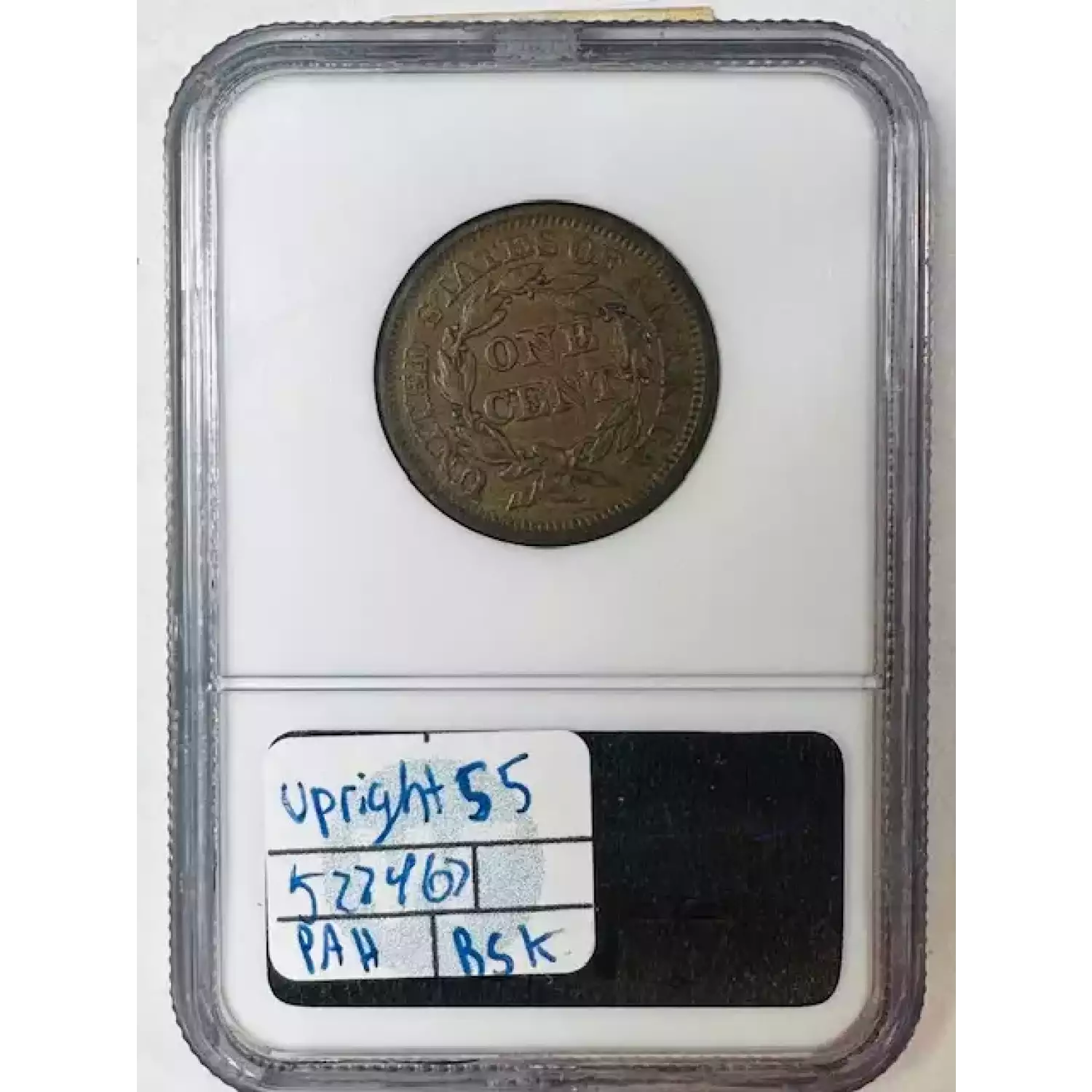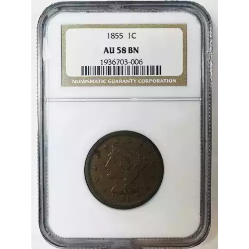1855 Braided Hair Cent NGC AU-58 BN Upright 55