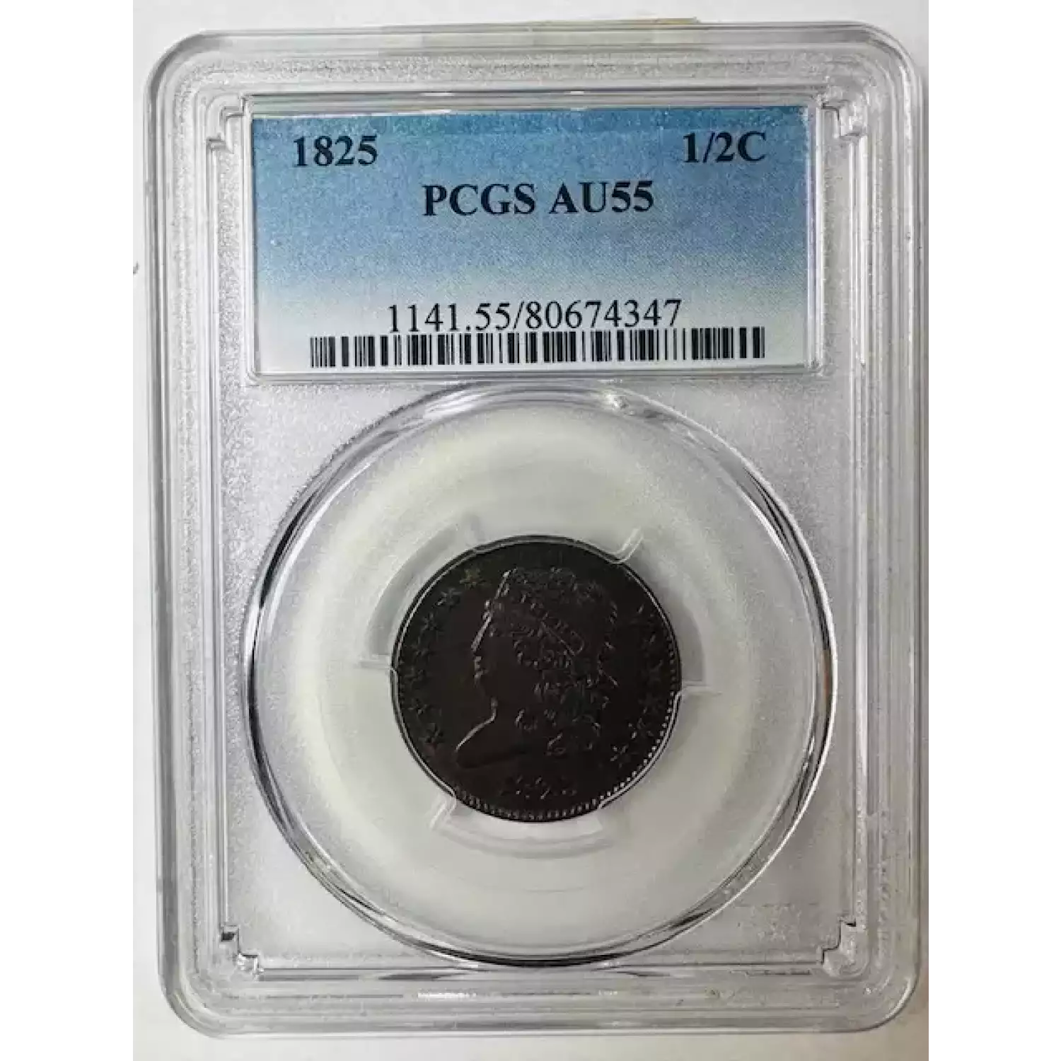 1825 Half Cent Classic Head PCGS AU-55 BN