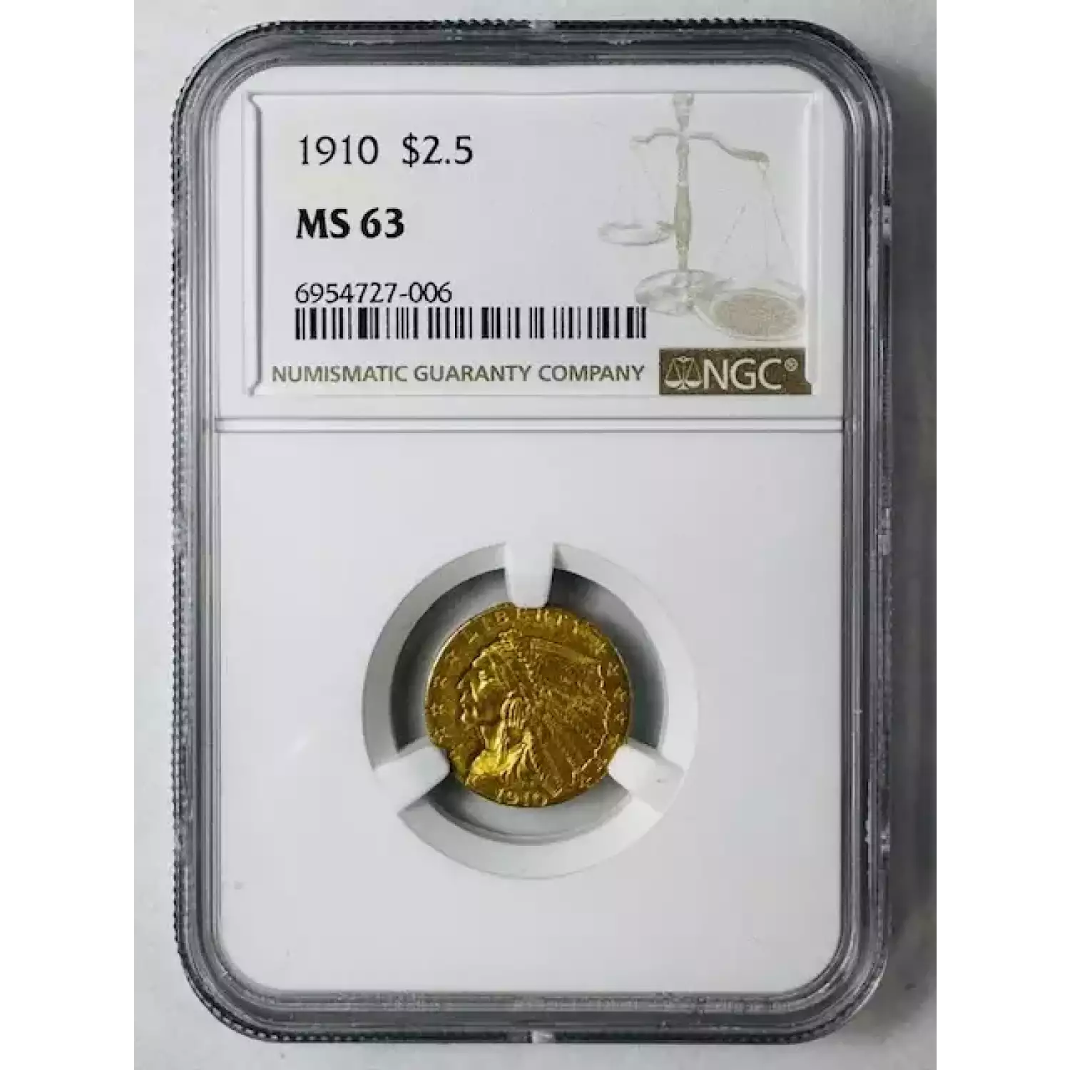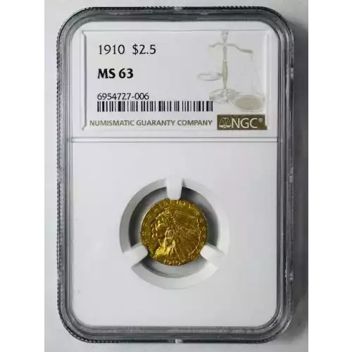 1910 Gold Quarter Eagles $2 1/2 Indian Head NGC MS-63