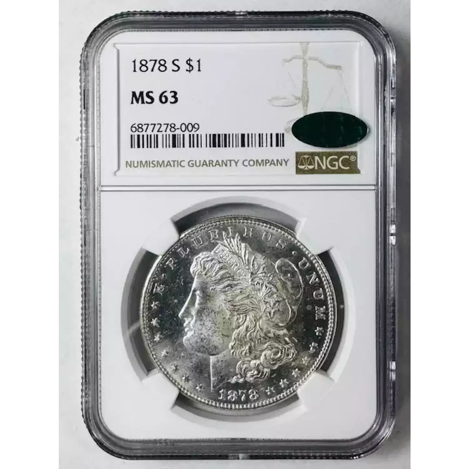 1878-S Morgan Silver Dollar NGC MS-63 Low Cac Population! CAC