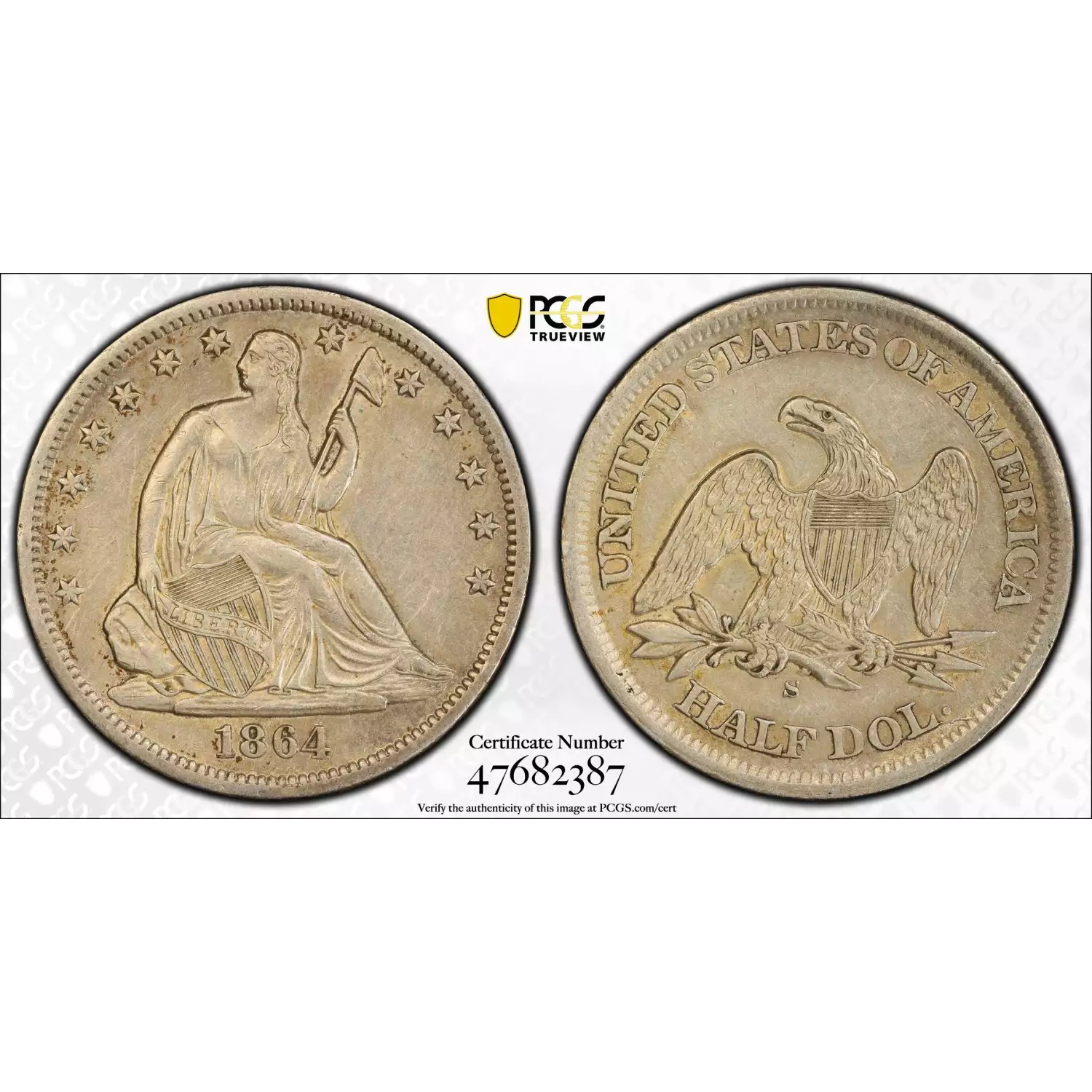 1864-S Half Dollars Liberty Seated PCGS XF-45