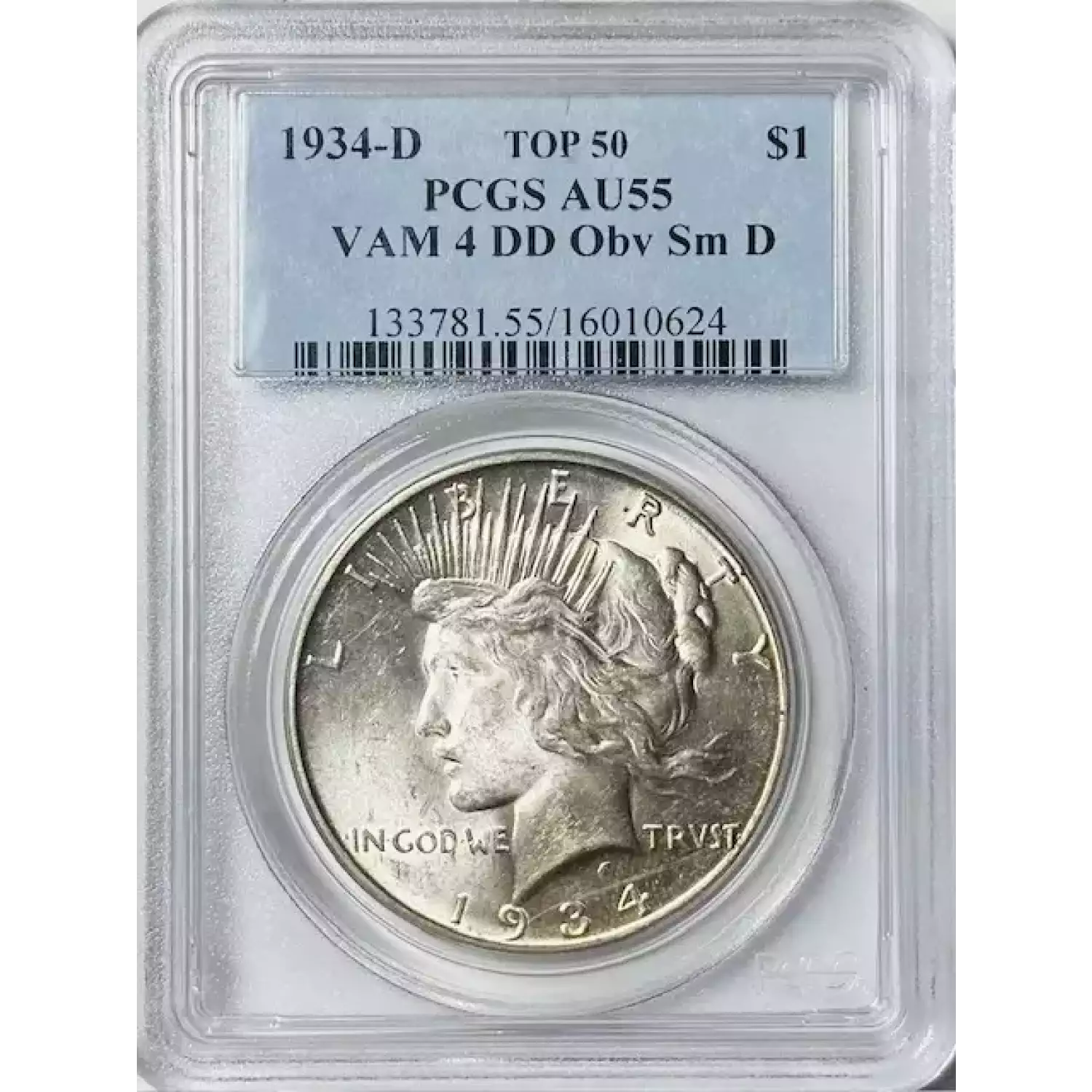1934-D Peace Dollar PCGS AU-55 VAM 4- DD OBV SM D