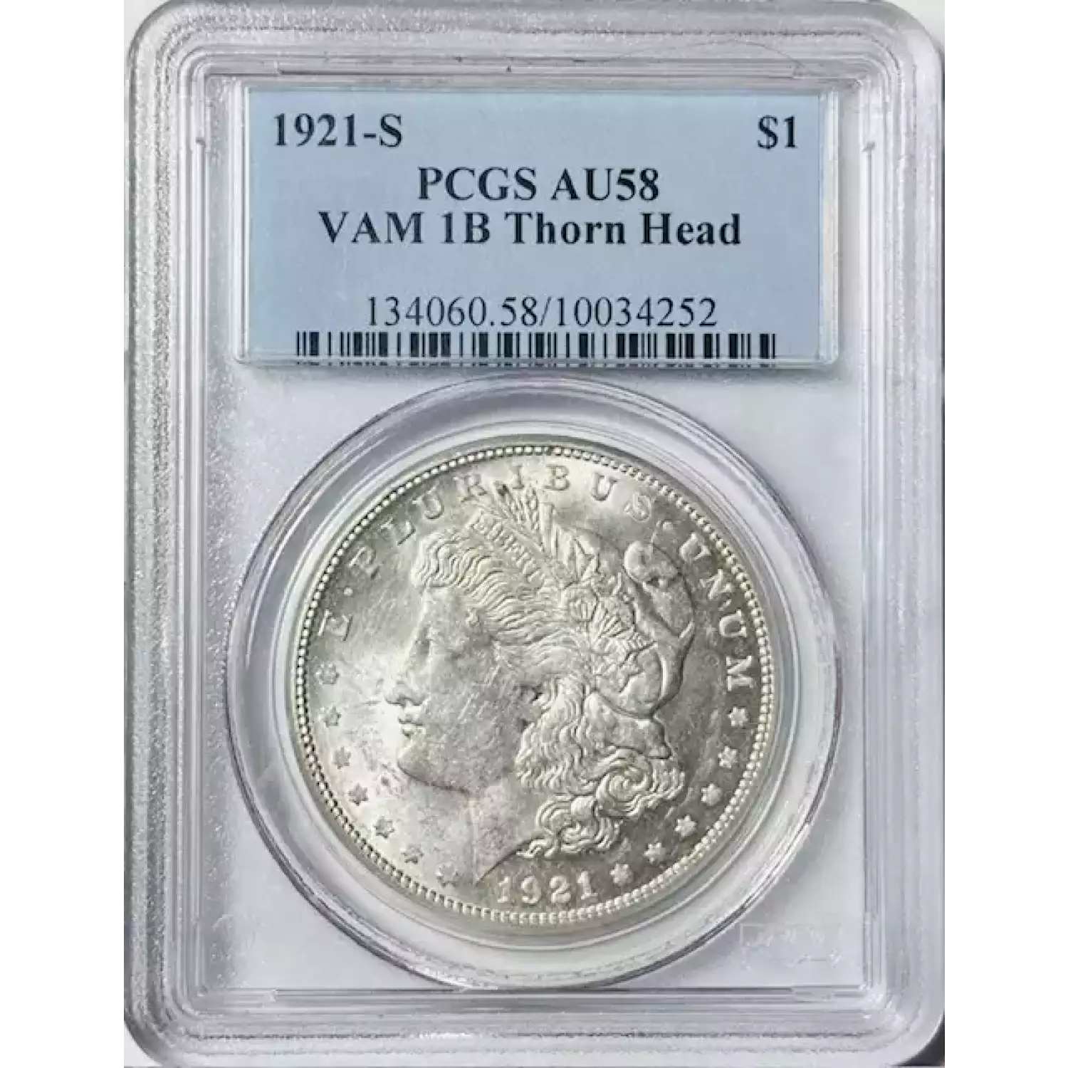 1921-S Morgan Silver Dollar PCGS AU-58 VAM 1B Thorn Head