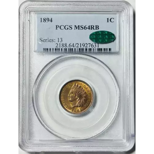 1894 Small Cents Indian Head PCGS MS-64 RB CAC