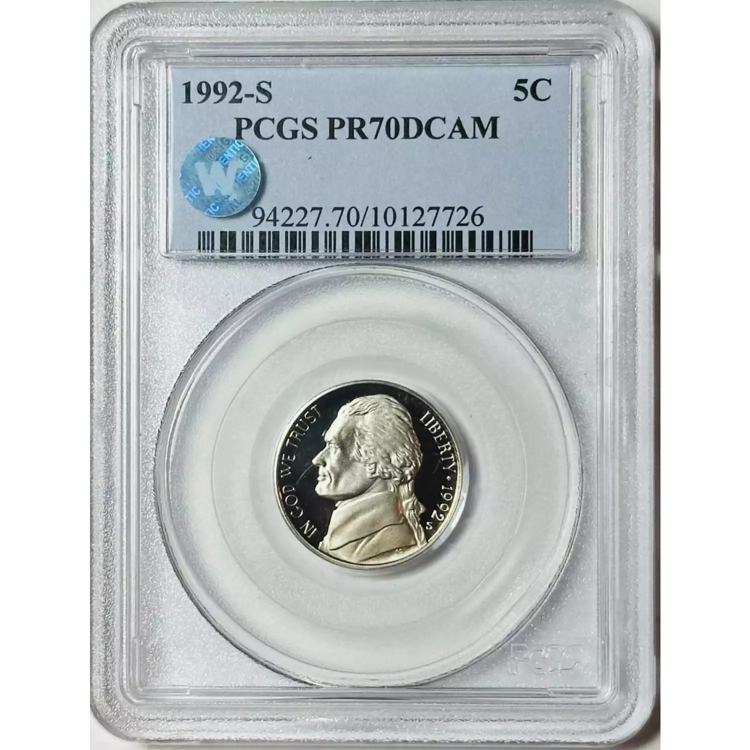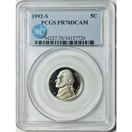 1992-S Nickel Jefferson PCGS PR-70 DCAM Sight White
