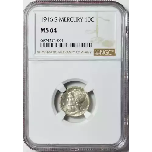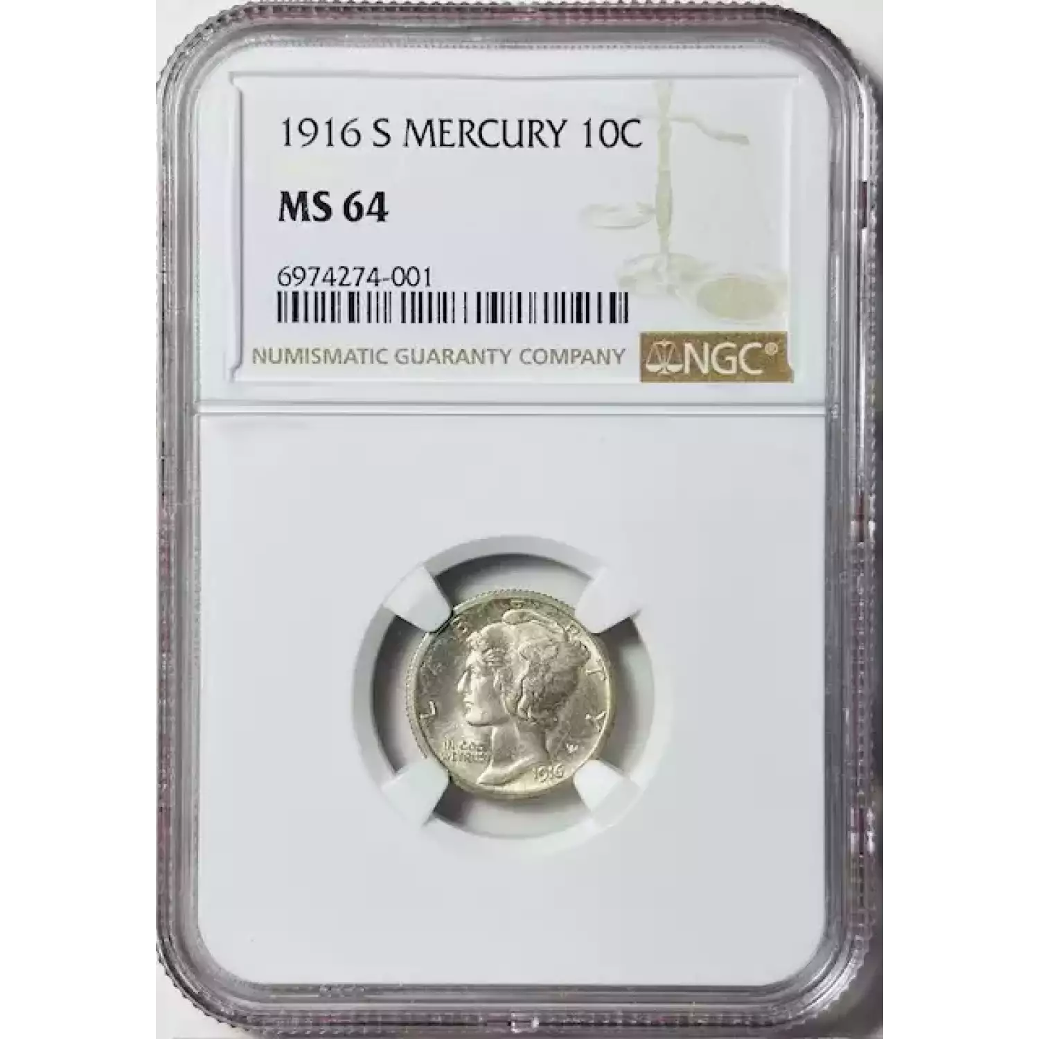 1916-S Mercury Dime NGC MS-64 S White Coin