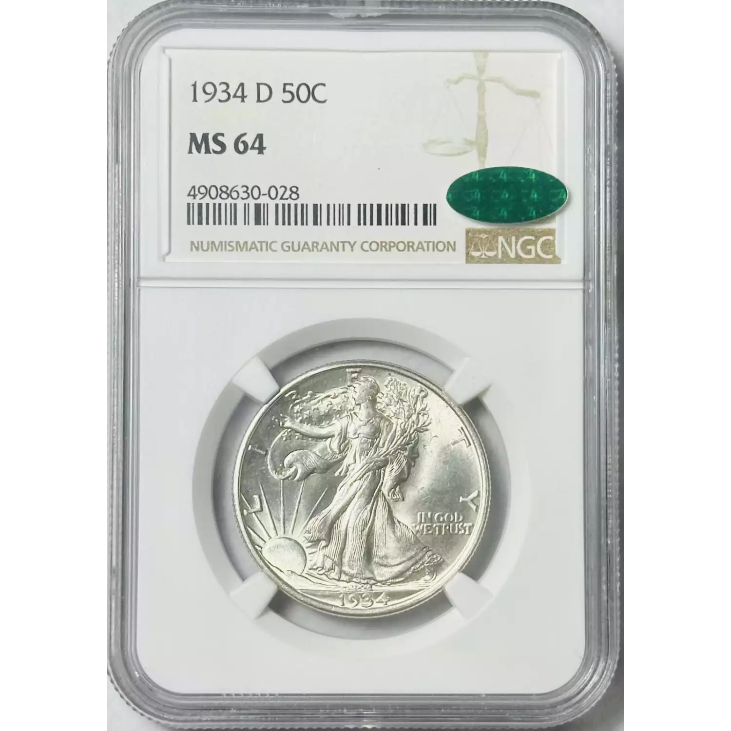 1934-D Walking Liberty Half Dollar NGC MS-64 CAC
