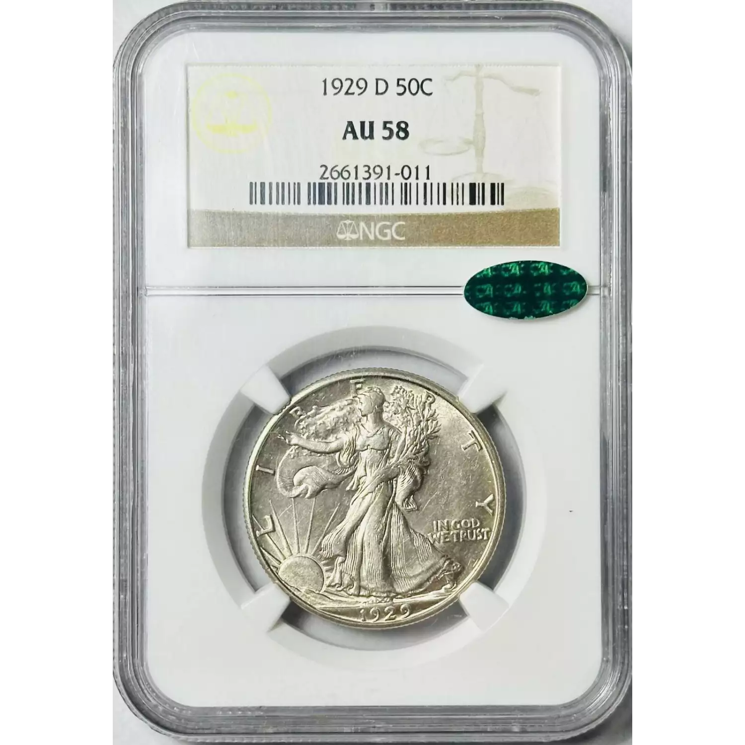1929-D Walking Liberty Half Dollar NGC AU-58 CAC