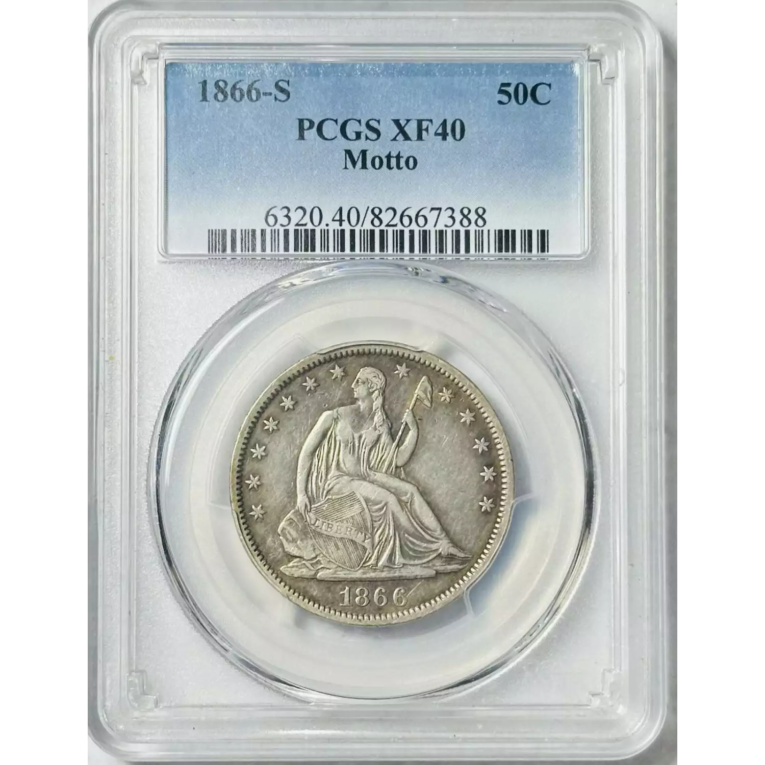 1866-S Half Dollars Liberty Seated PCGS XF-40 Motto