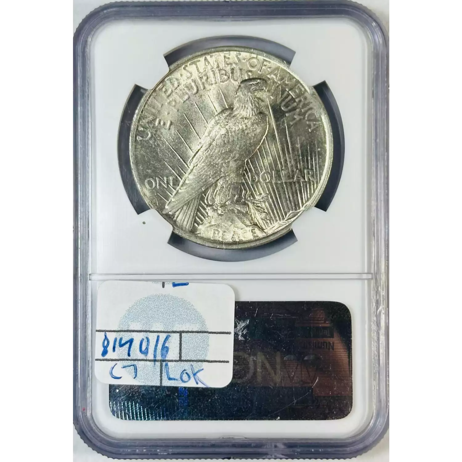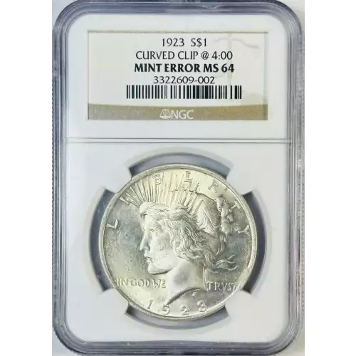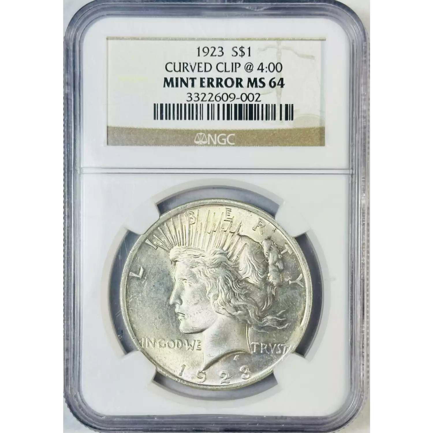1923 Peace Dollar NGC MS-64 1923 CURVED CLIP @ 4:00