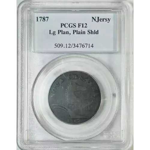 1787 Post Colonial Issues New Jersey Coppers - Copper PCGS F-12 BN Lg Plan, Plain Shld