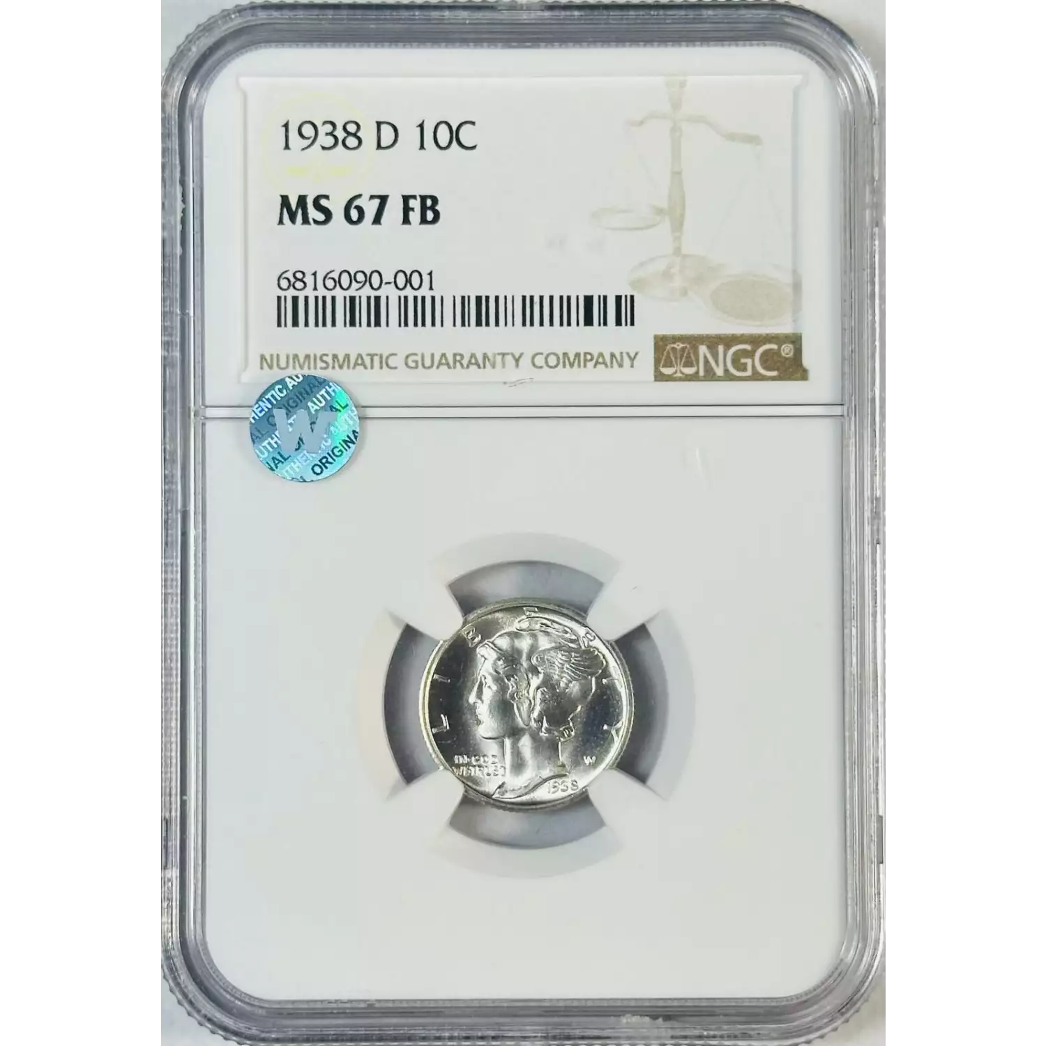 1938-D Mercury Dime NGC MS-67 FB Sight White