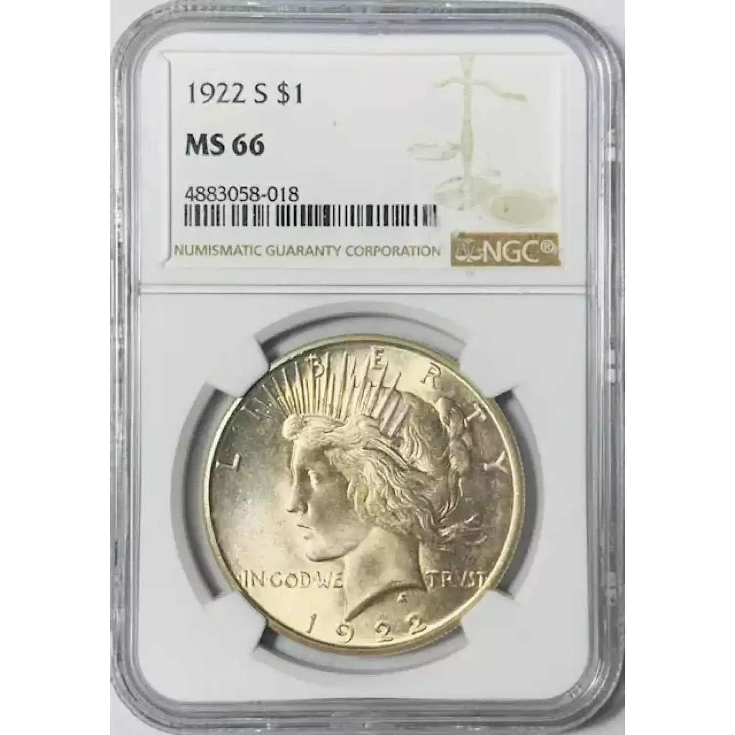 1922-S Peace Dollar NGC MS-66 Gorgeous Coin!