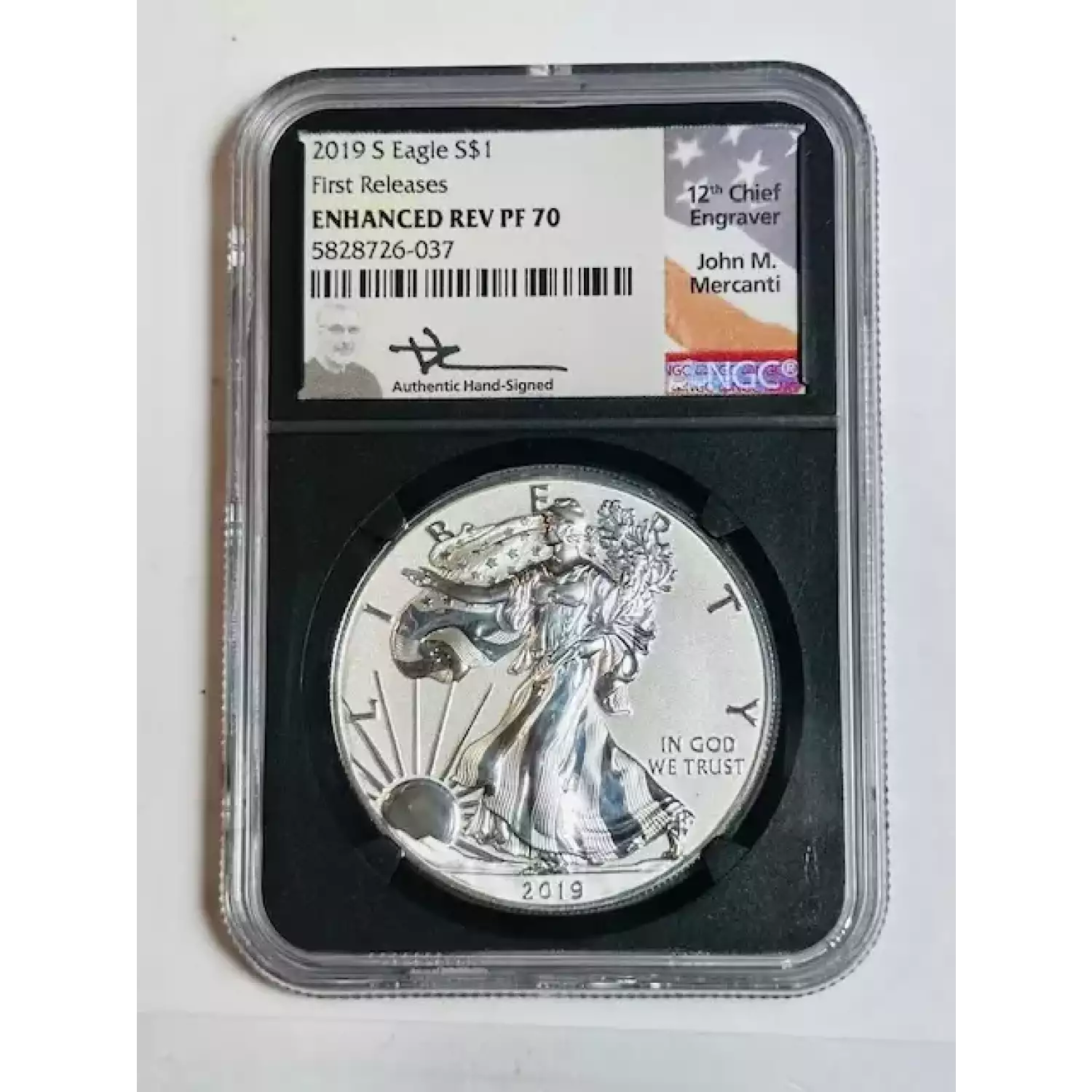 2019-S Silver Eagles NGC PF-70 S First Releases- Enhanced Reverse Proof Mercanti Signed!