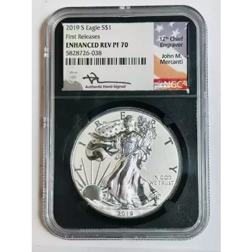 2019-S Silver Eagles NGC PF-70 S First Releases- Enhanced Reverse Proof Mercanti Signed!