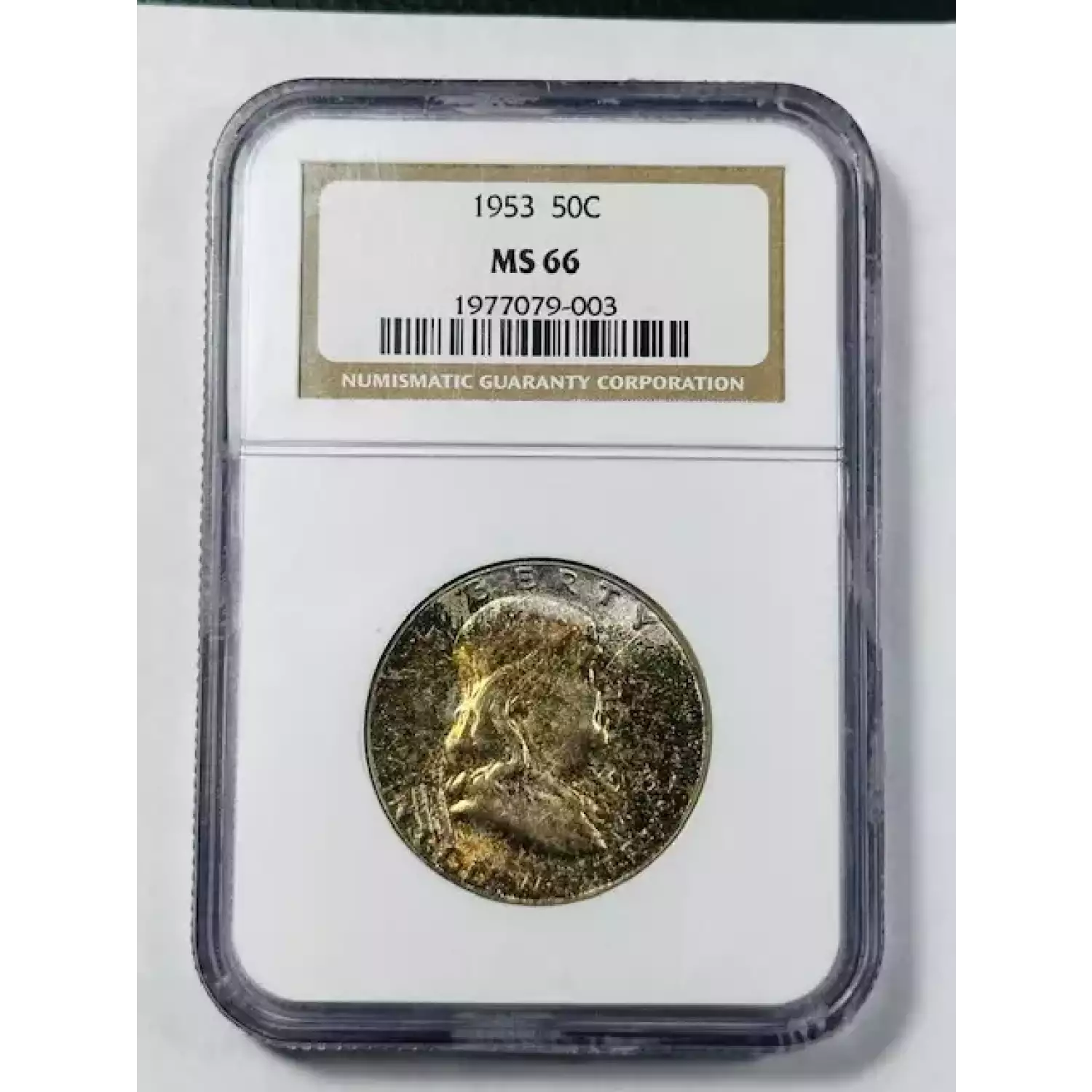 1953 Franklin Half Dollar NGC MS-66 Nice colorful toning!