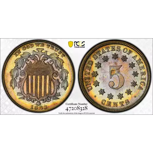 1883 Nickel Shield PCGS MS-64 With CENTS- WOW COLOR!