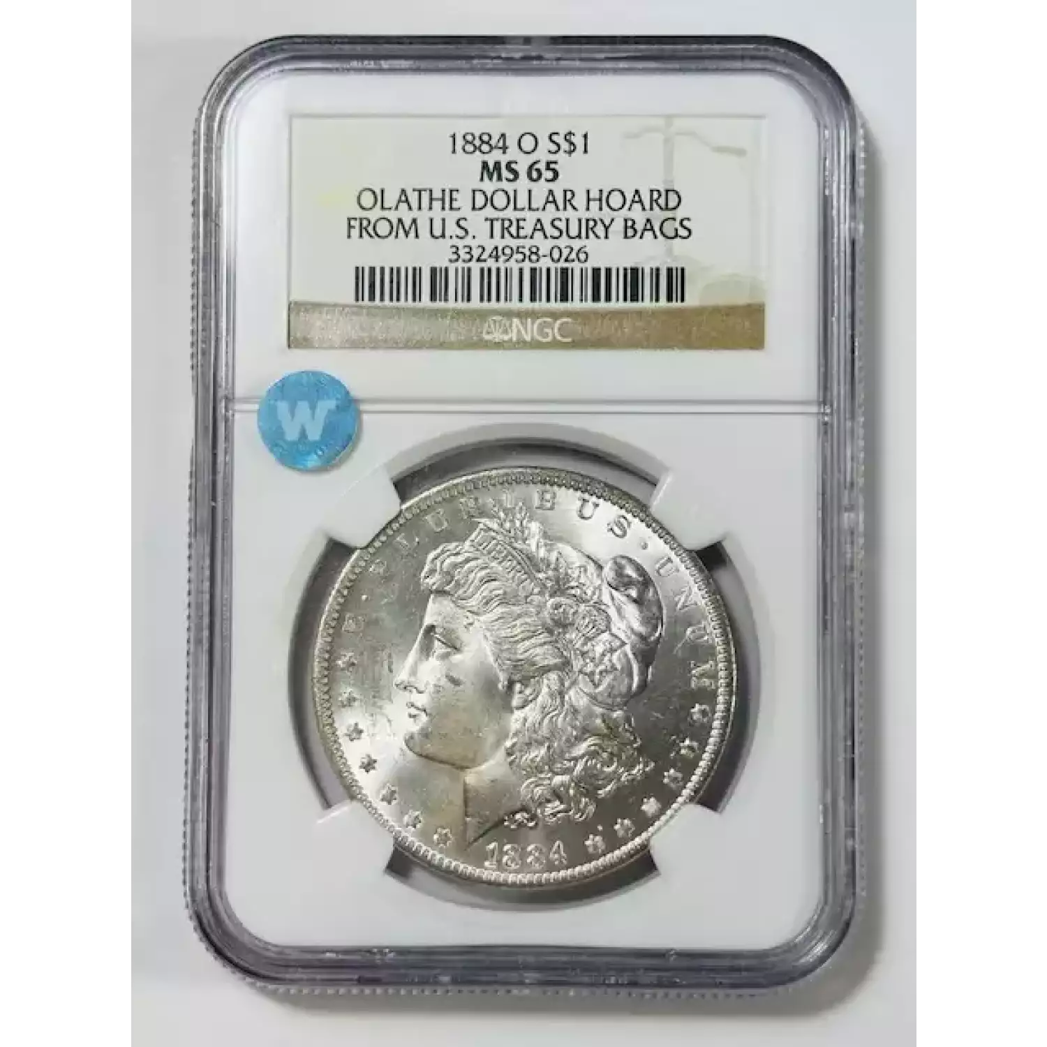 1884-O Morgan Silver Dollar NGC MS-65 Olathe Hoard from U.S Treasury Bags! Sight White