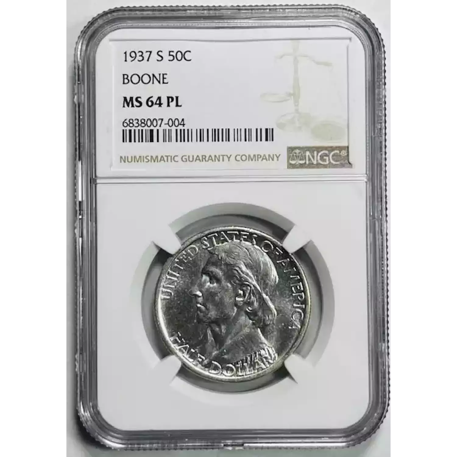 1937-S Classic Commemorative Daniel Boone Bicentennial NGC MS-64 PL White- RARE Proof Like!