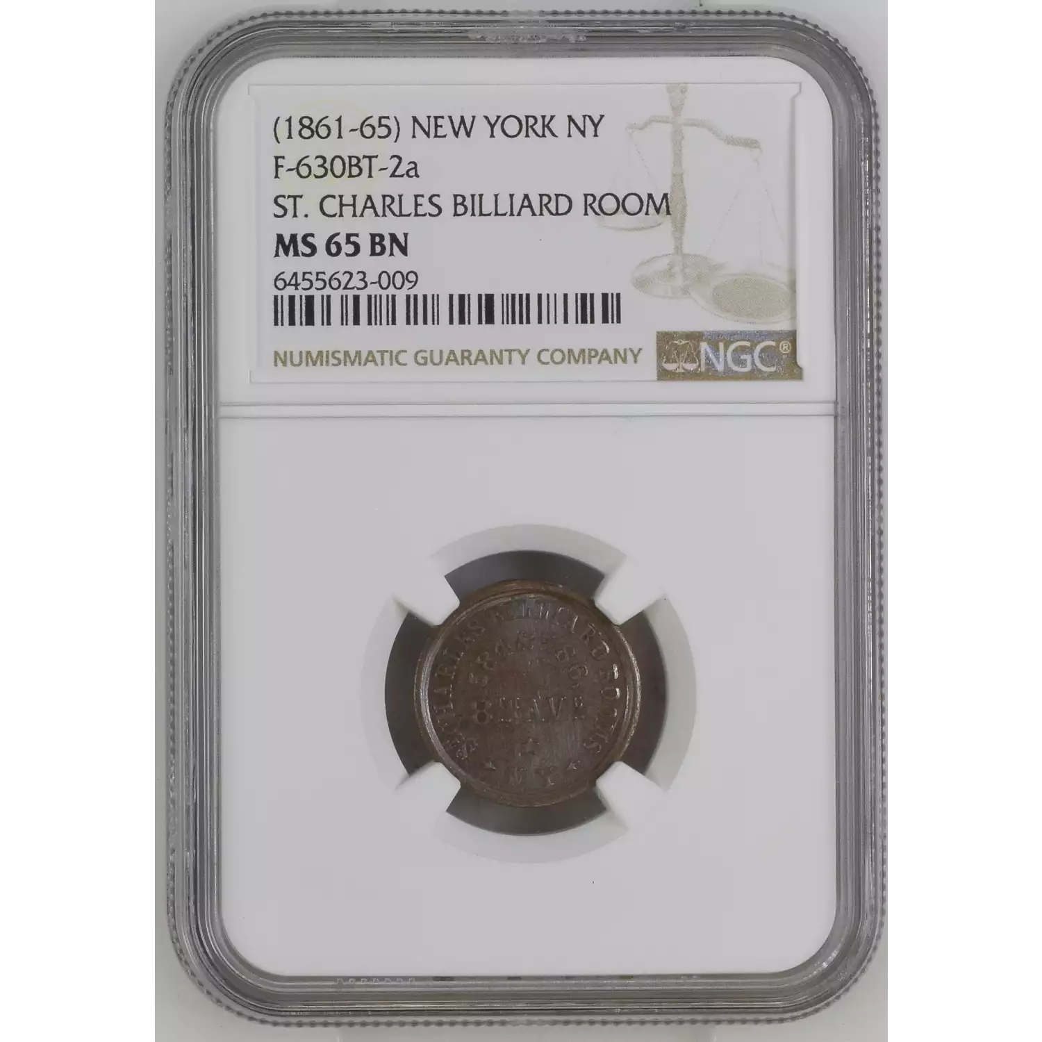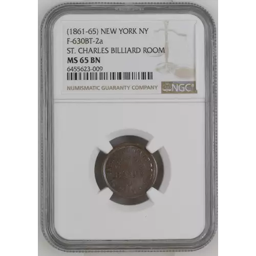 1861 Pvt Tokens - Civil War Tokens Sanitary Commission New York NGC MS-65 BN F-630BT-2a ST. CHARLES BILLIARD ROOM