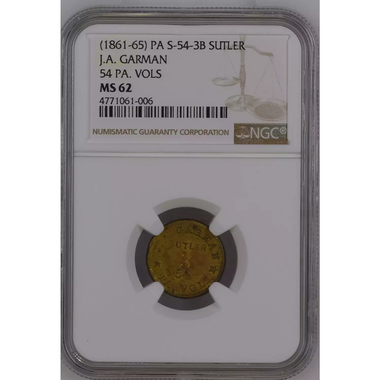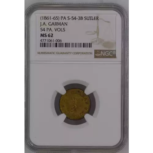 1861 Pvt Tokens - Civil War Tokens Sutlers NGC MS-62 (-65) PA J.A. GARMAN 54 PA. VOLS