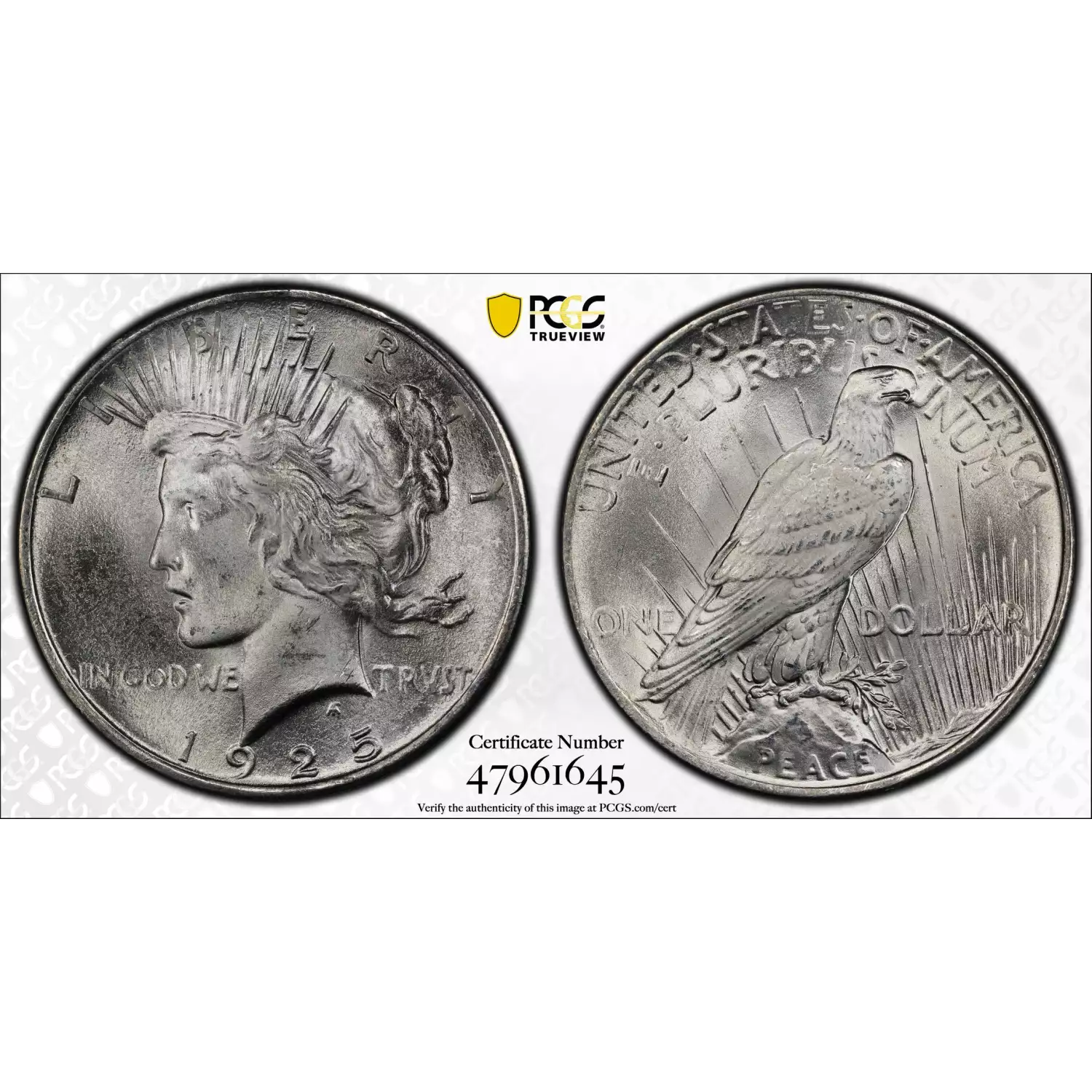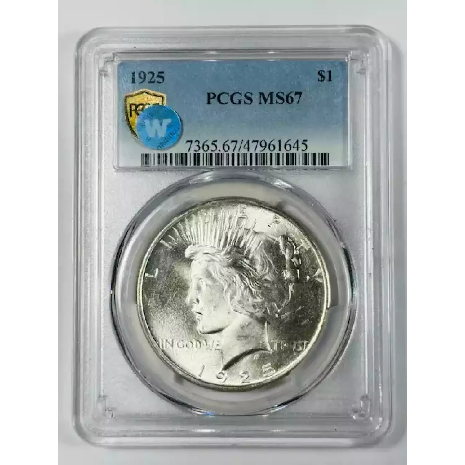 1925 Peace Dollar PCGS MS-67 WOW Premium Quality Peace! Sight White