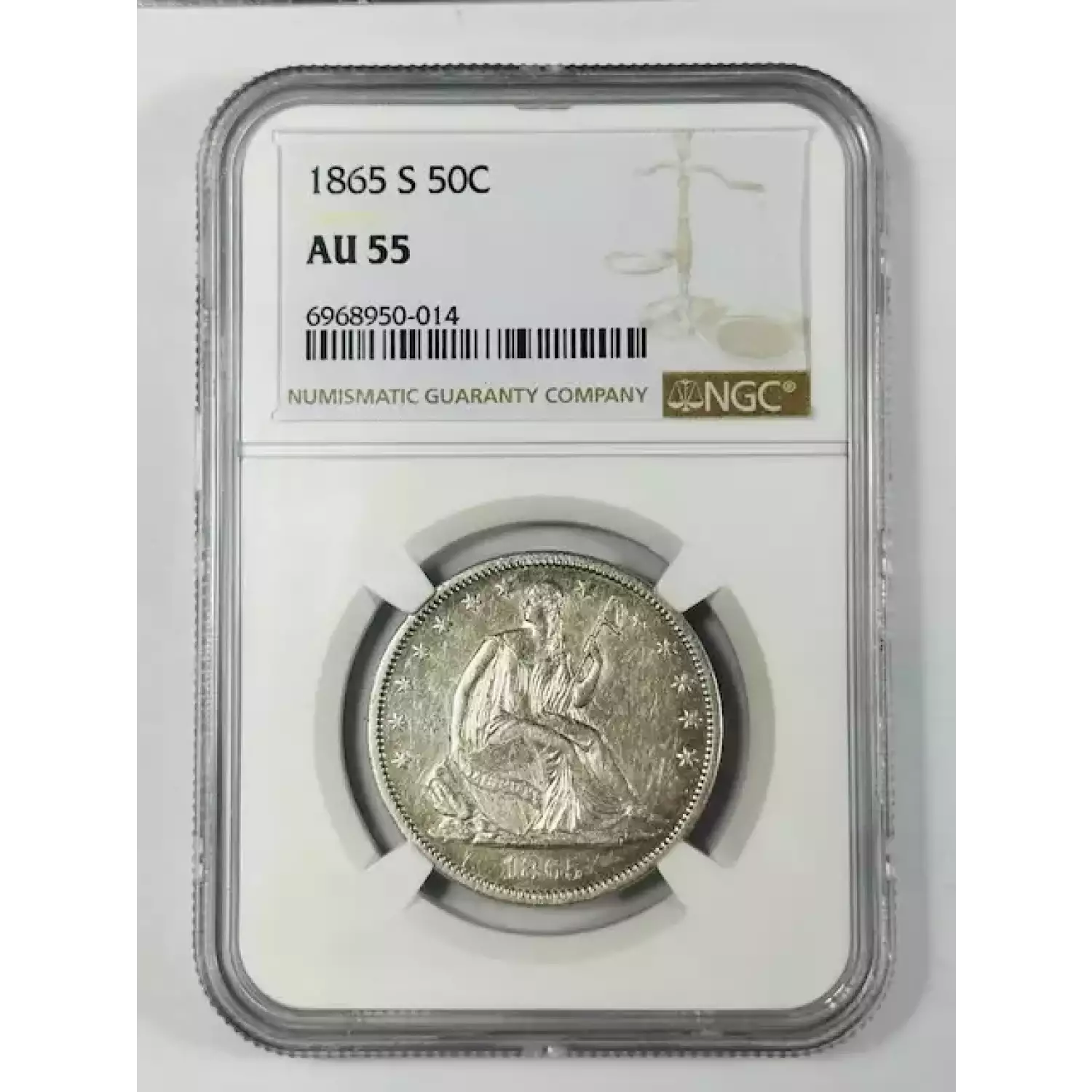 1865-S Half Dollars Liberty Seated NGC AU-55