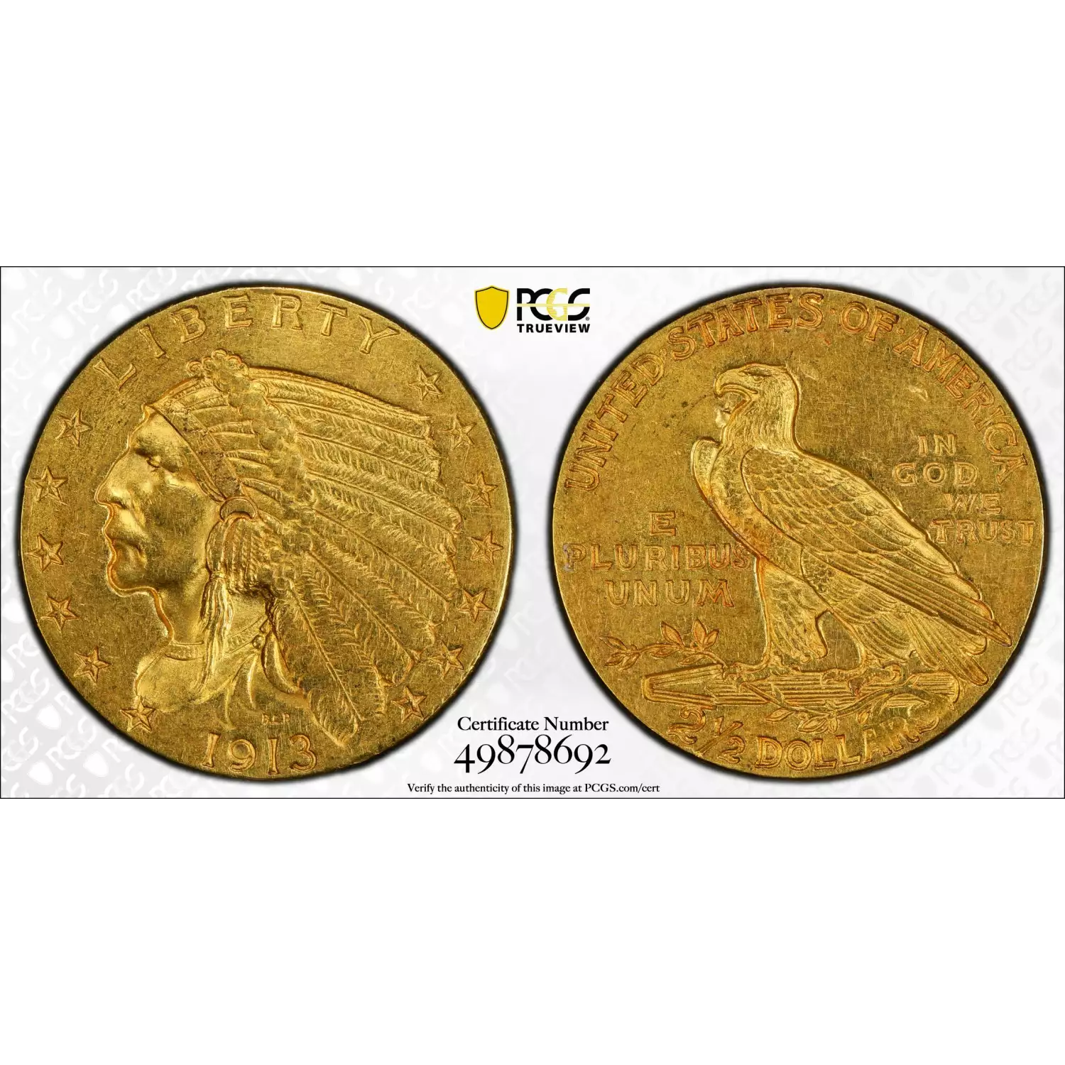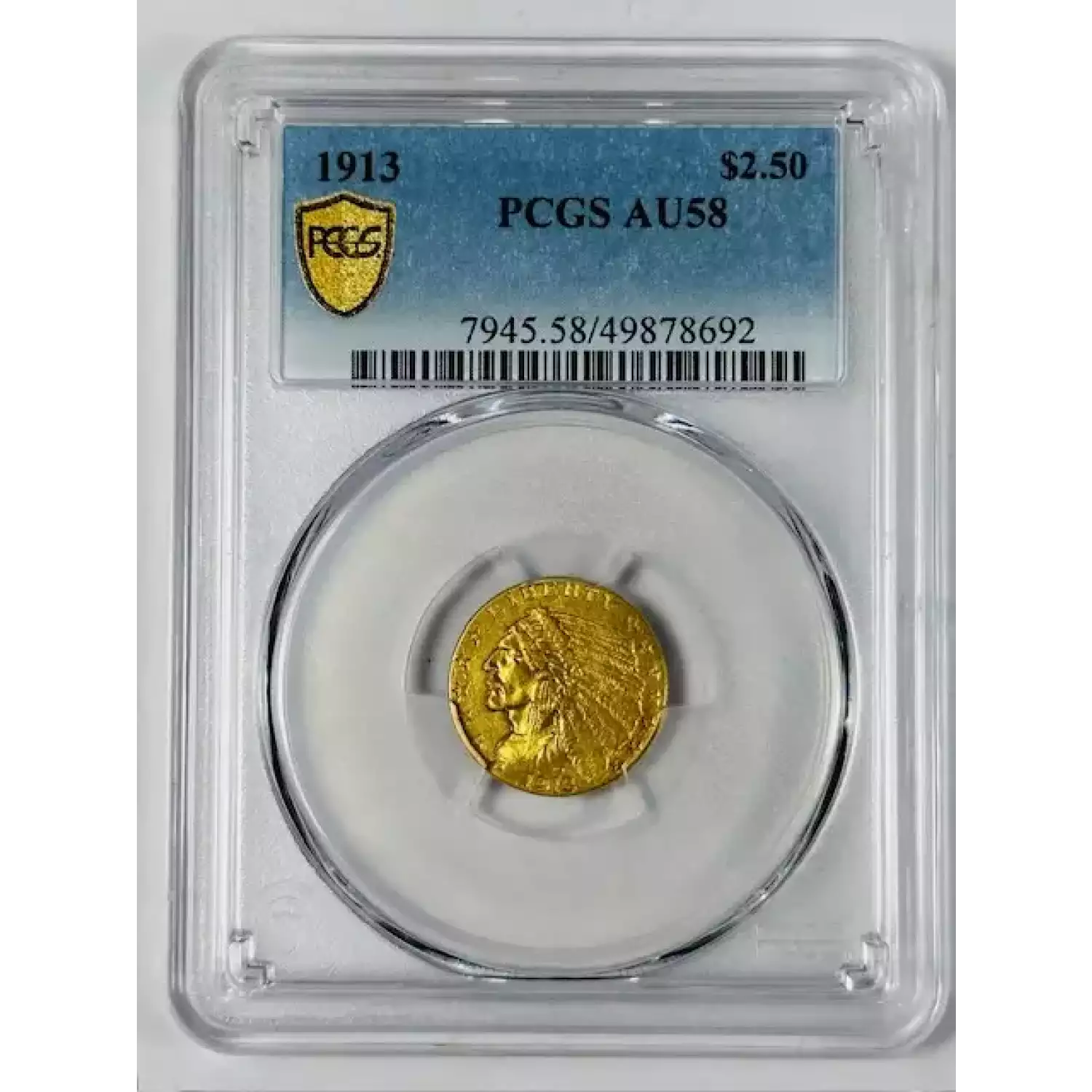 1913 Gold Quarter Eagles $2 1/2 Indian Head PCGS AU-58