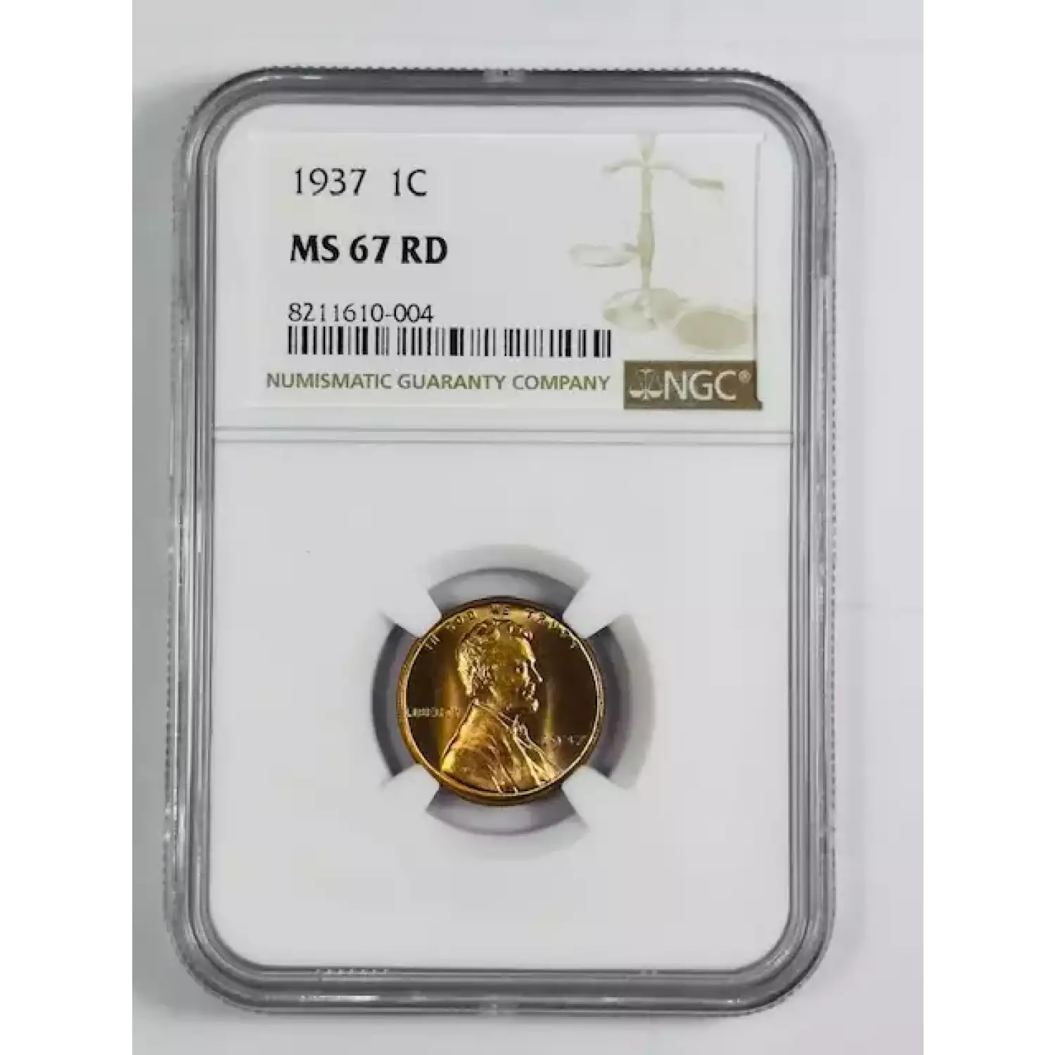 1937 Small Cents Lincoln, Wheat Ears Reverse NGC MS-67 RD