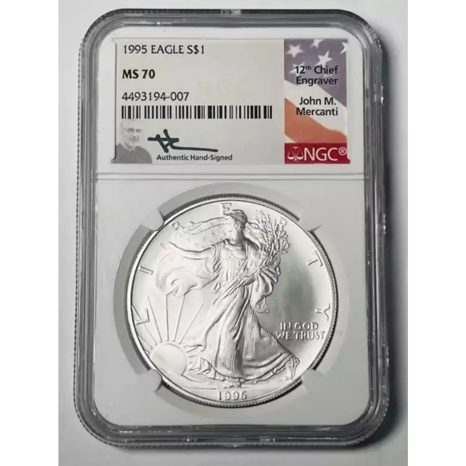 1995 Silver Eagles NGC MS-70 Mercanti Signed Label