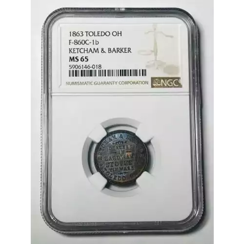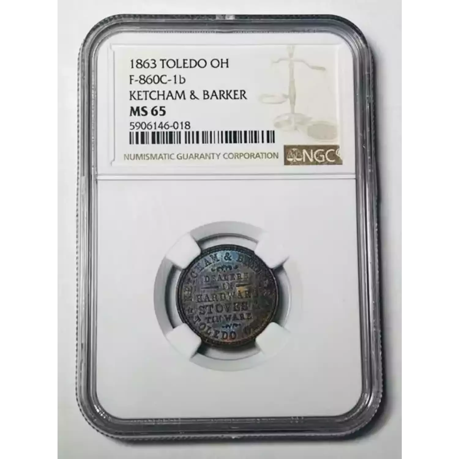 1863 Pvt Tokens - Civil War Tokens Civil War Token NGC MS-65 F-860C-1b KETCHAM & BARKER