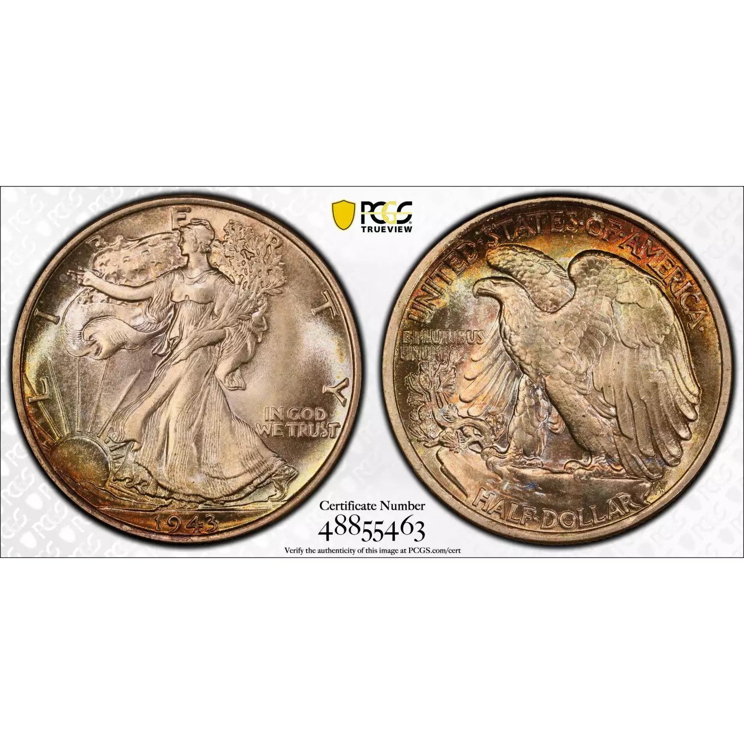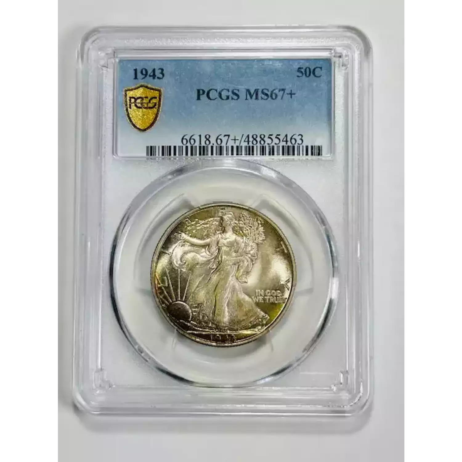 1943 Walking Liberty Half Dollar PCGS MS-67+ Pretty Toning!