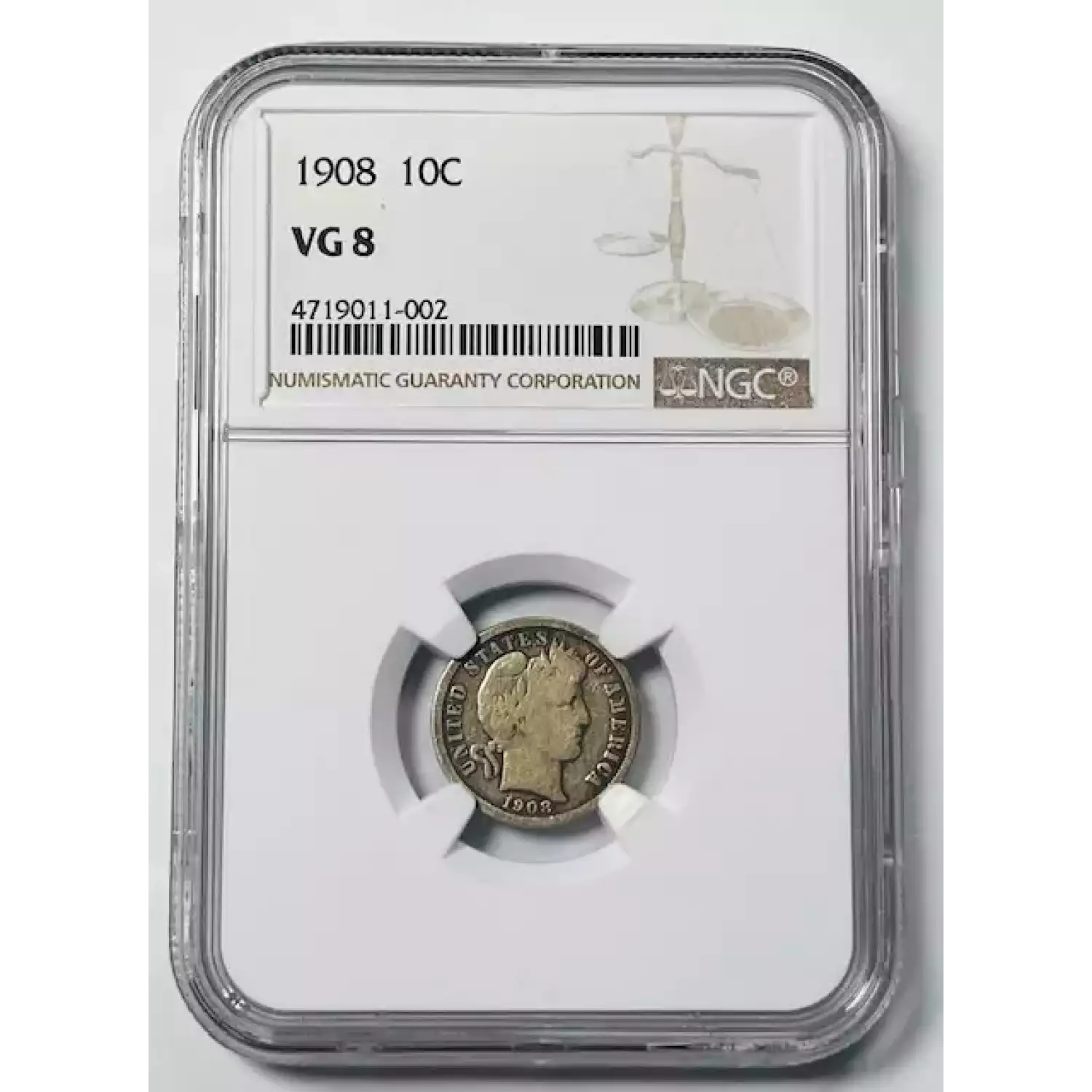 1908 Barber Dime NGC VG-8