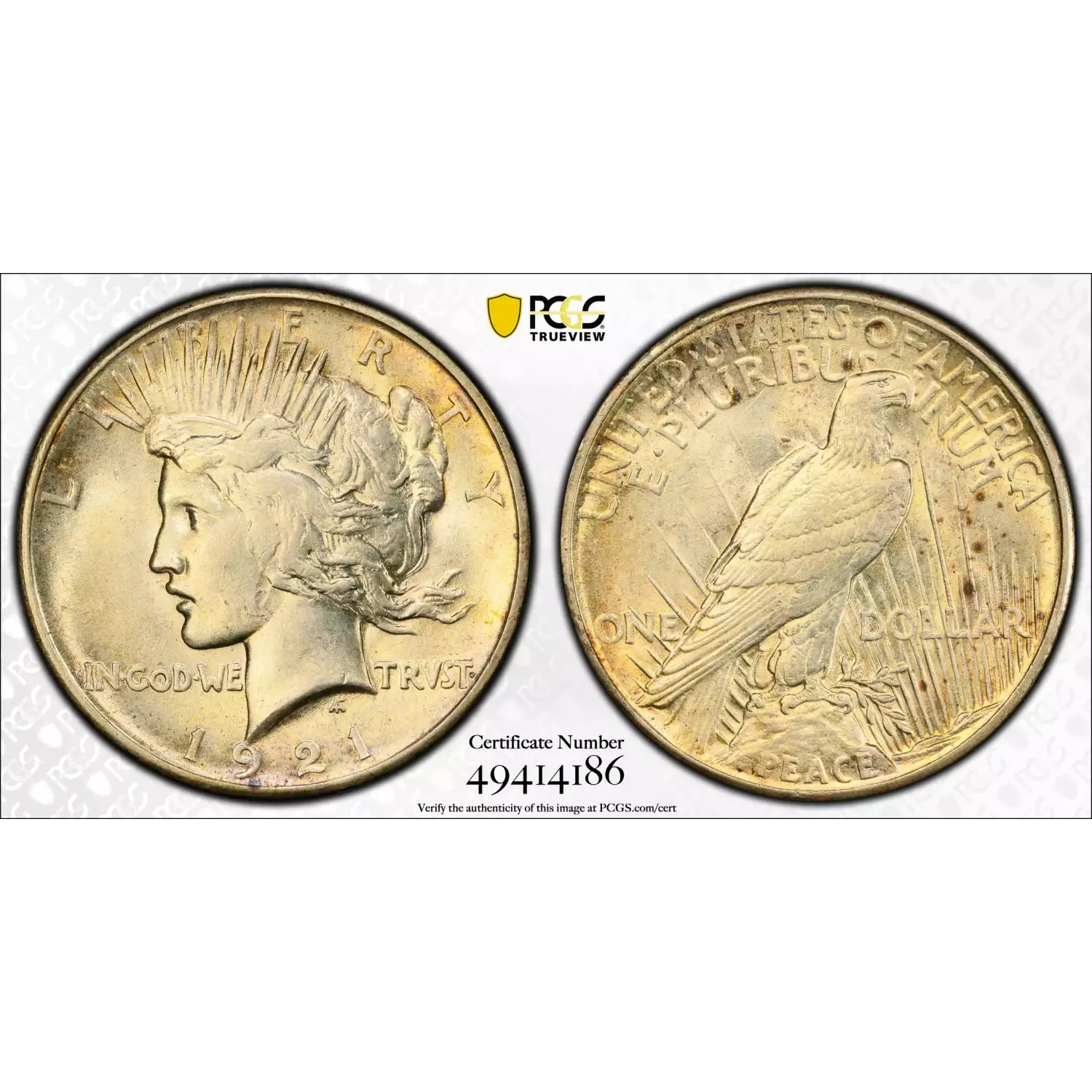 1921 Peace Dollar PCGS AU-58 Peace
