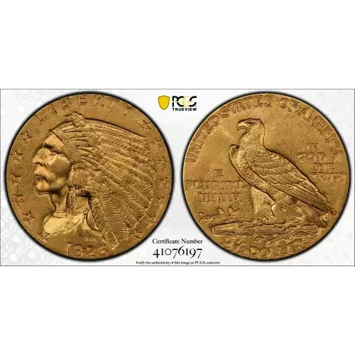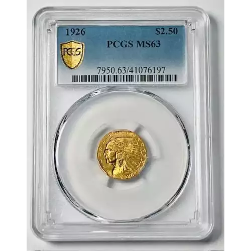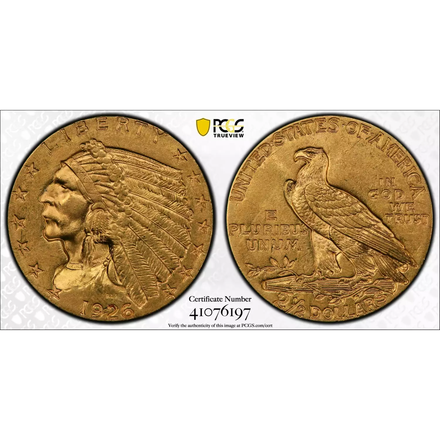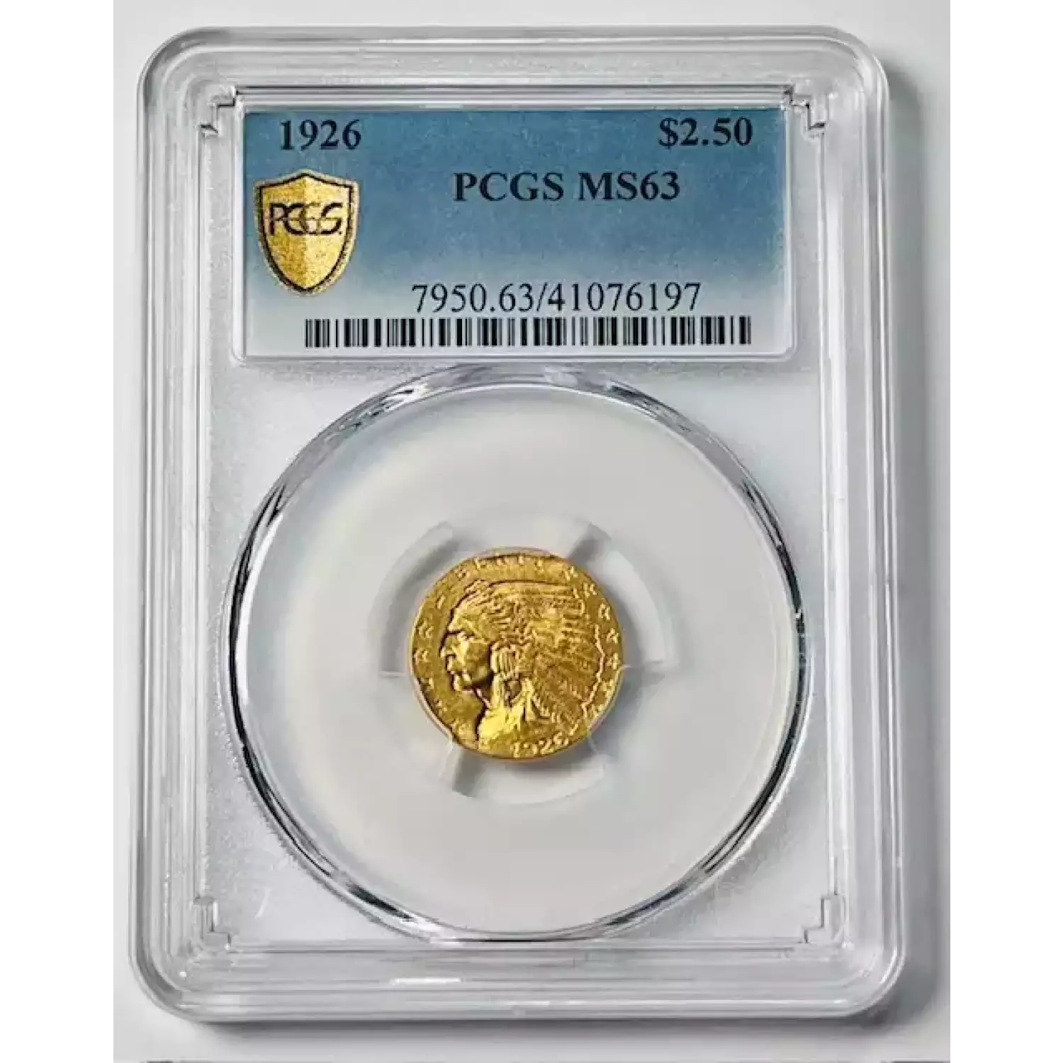 1926 Gold Quarter Eagles $2 1/2 Indian Head PCGS MS-63