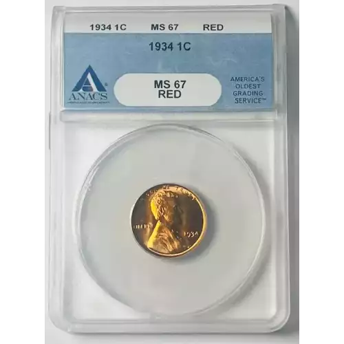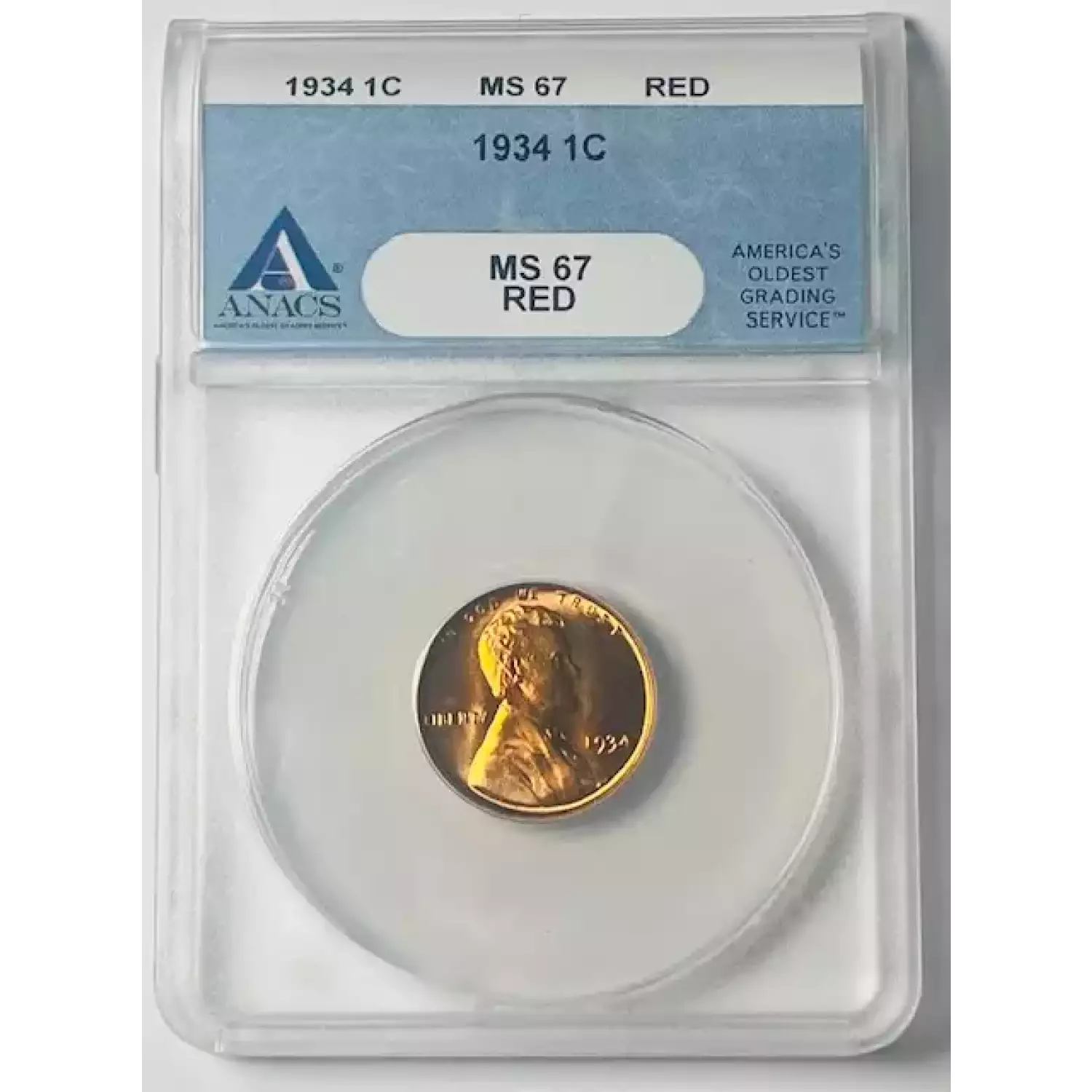 1934 Small Cents Lincoln, Wheat Ears Reverse ANACS MS-67 RED Wow Luster!