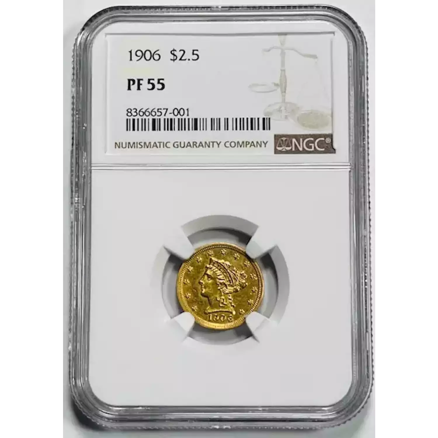 1906 $2.50 Gold Liberty Head Quarter Eagle NGC PF-55 Mintage 160!