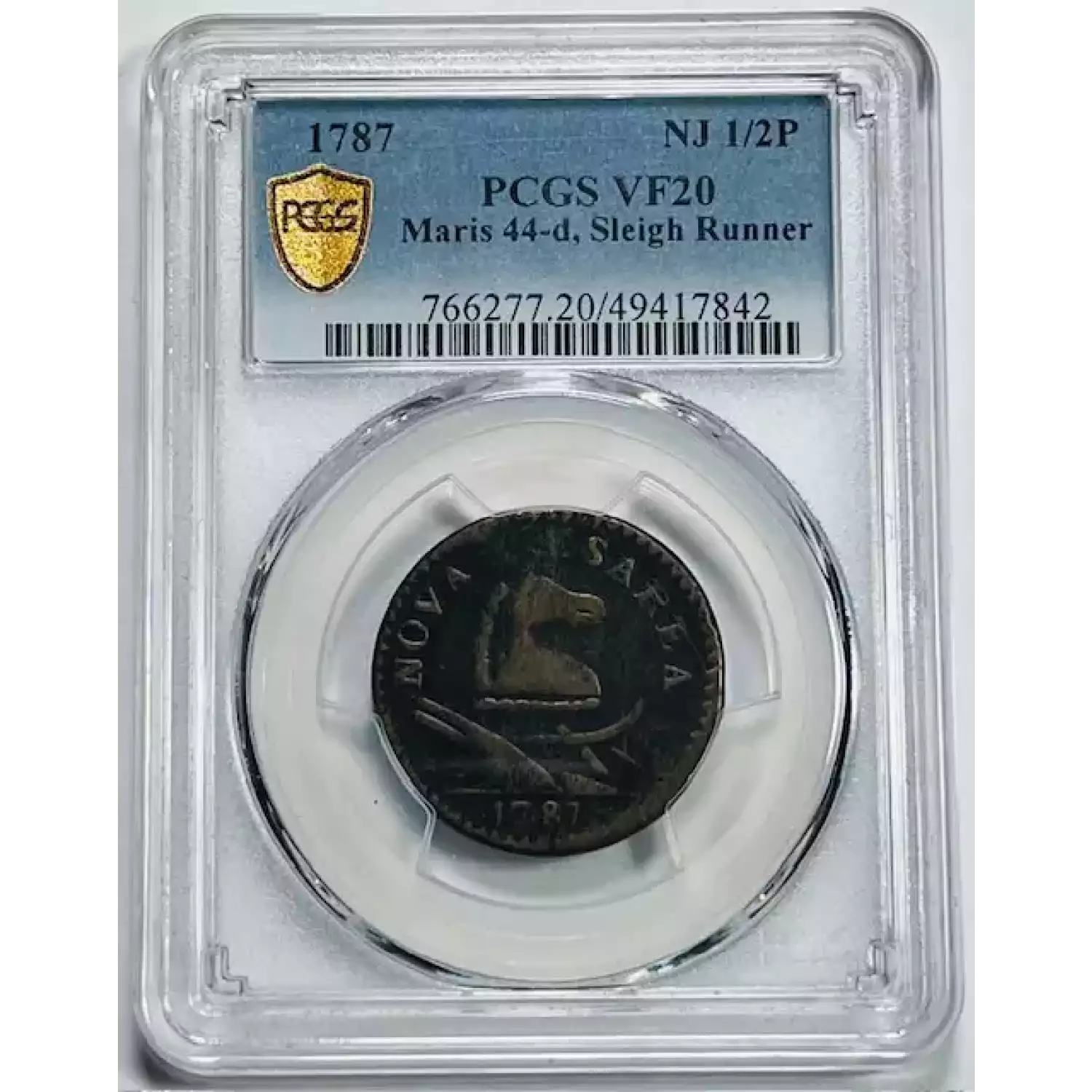 1787 Post Colonial Issues New Jersey Coppers - Copper PCGS VF-20 Maris 44-d, Sleigh Runner R4