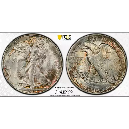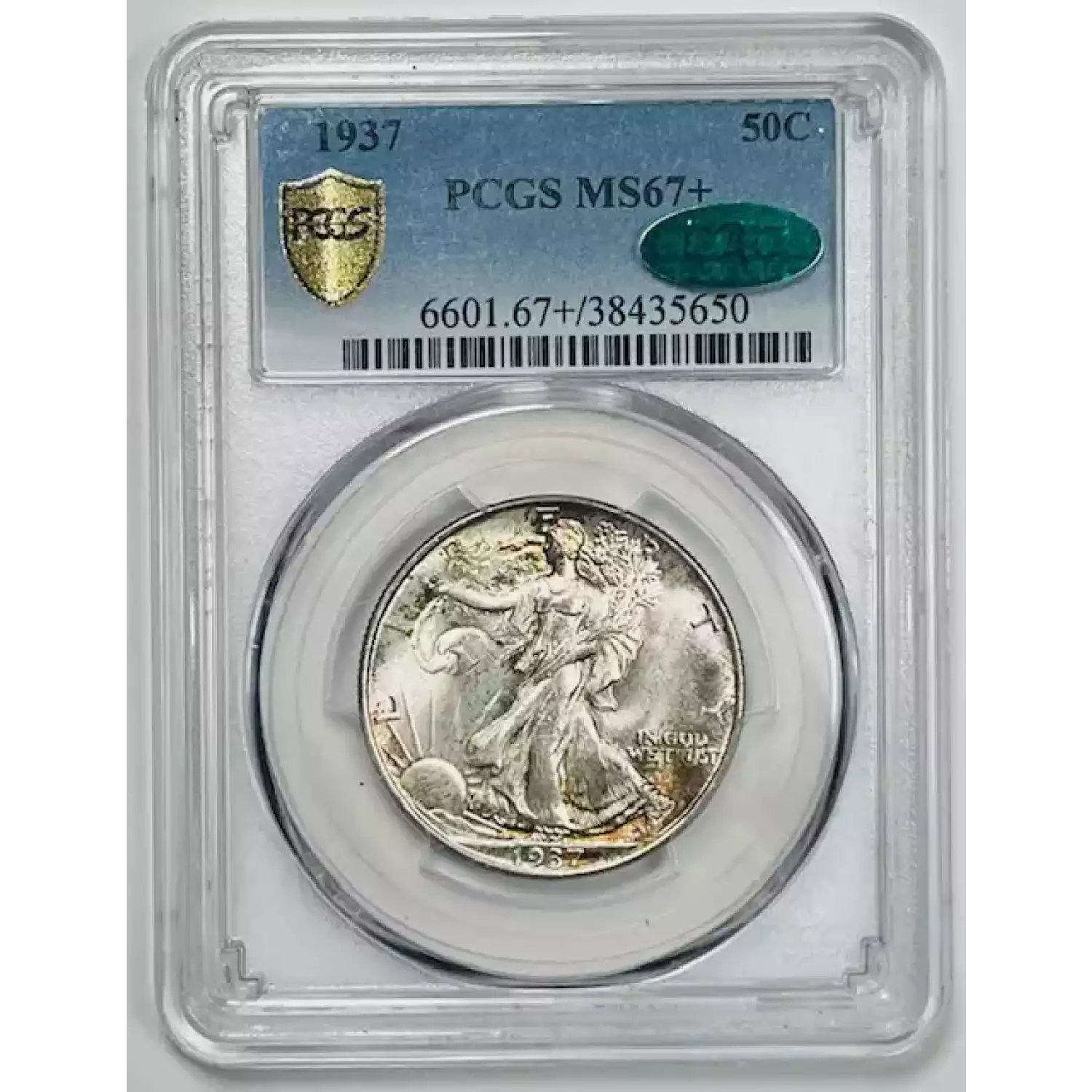 1937 Walking Liberty Half Dollar PCGS MS-67+ Pretty! CAC