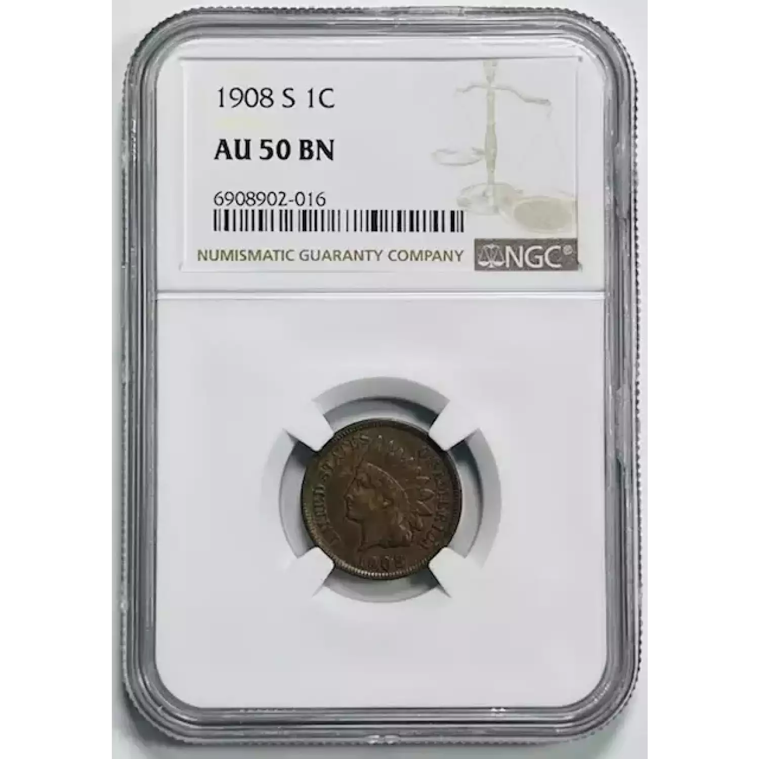 1908-S Small Cents Indian Head NGC AU-50 BN