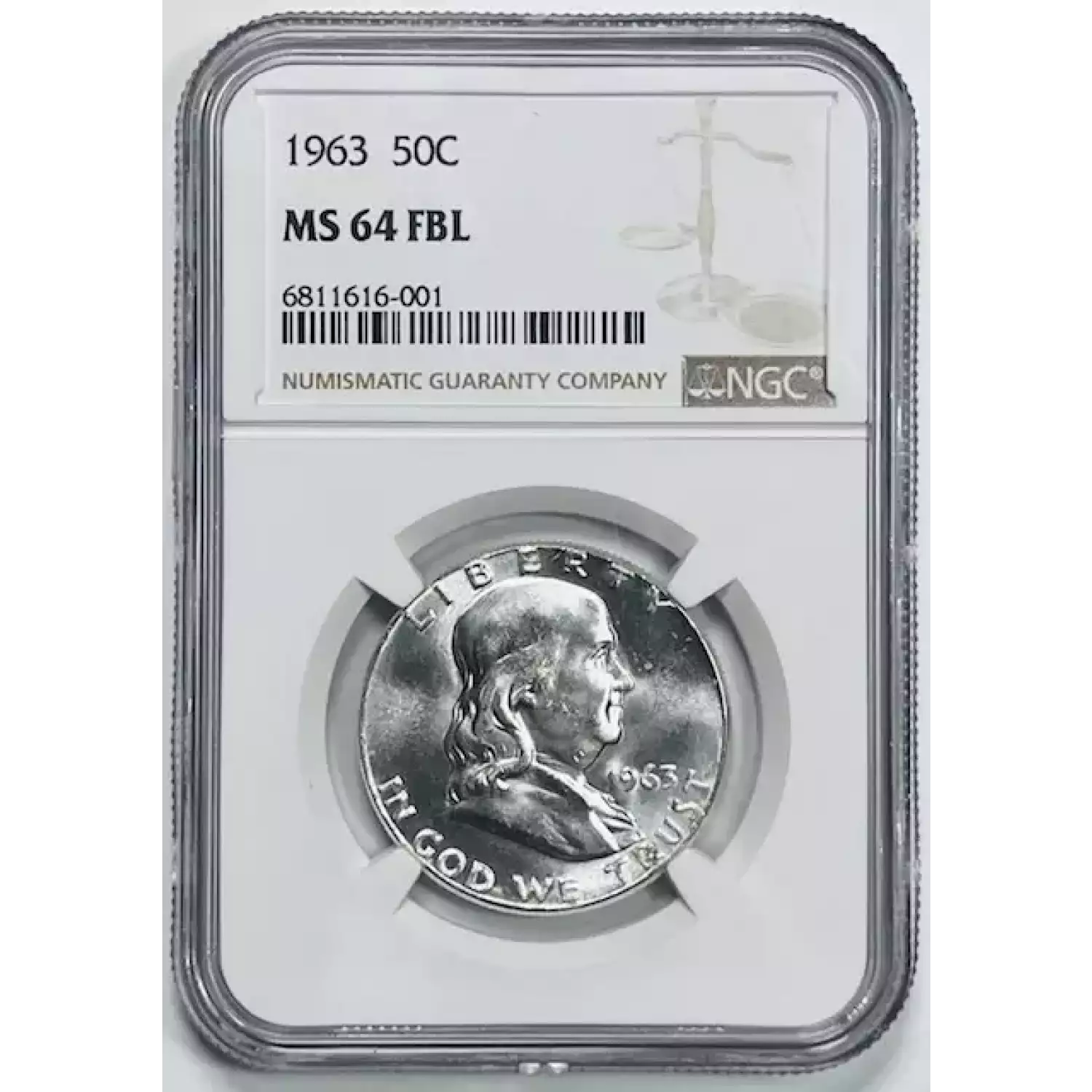 1963 Franklin Half Dollar NGC MS-64 FBL