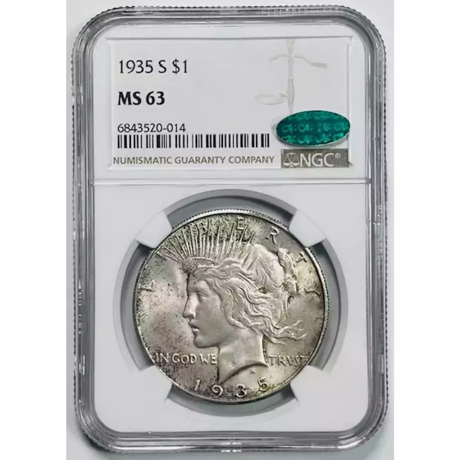 1935-S Peace Dollar NGC MS-63 Very Low CAC Pop! CAC