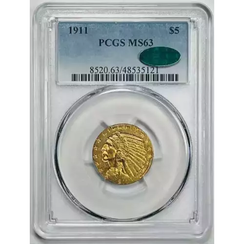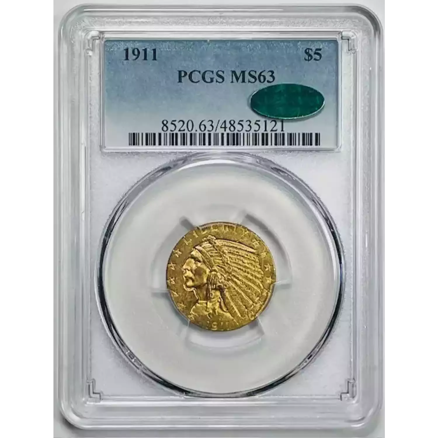 1911 Gold Half Eagles $5 Indian Head PCGS MS-63 Low CAC Pop! CAC