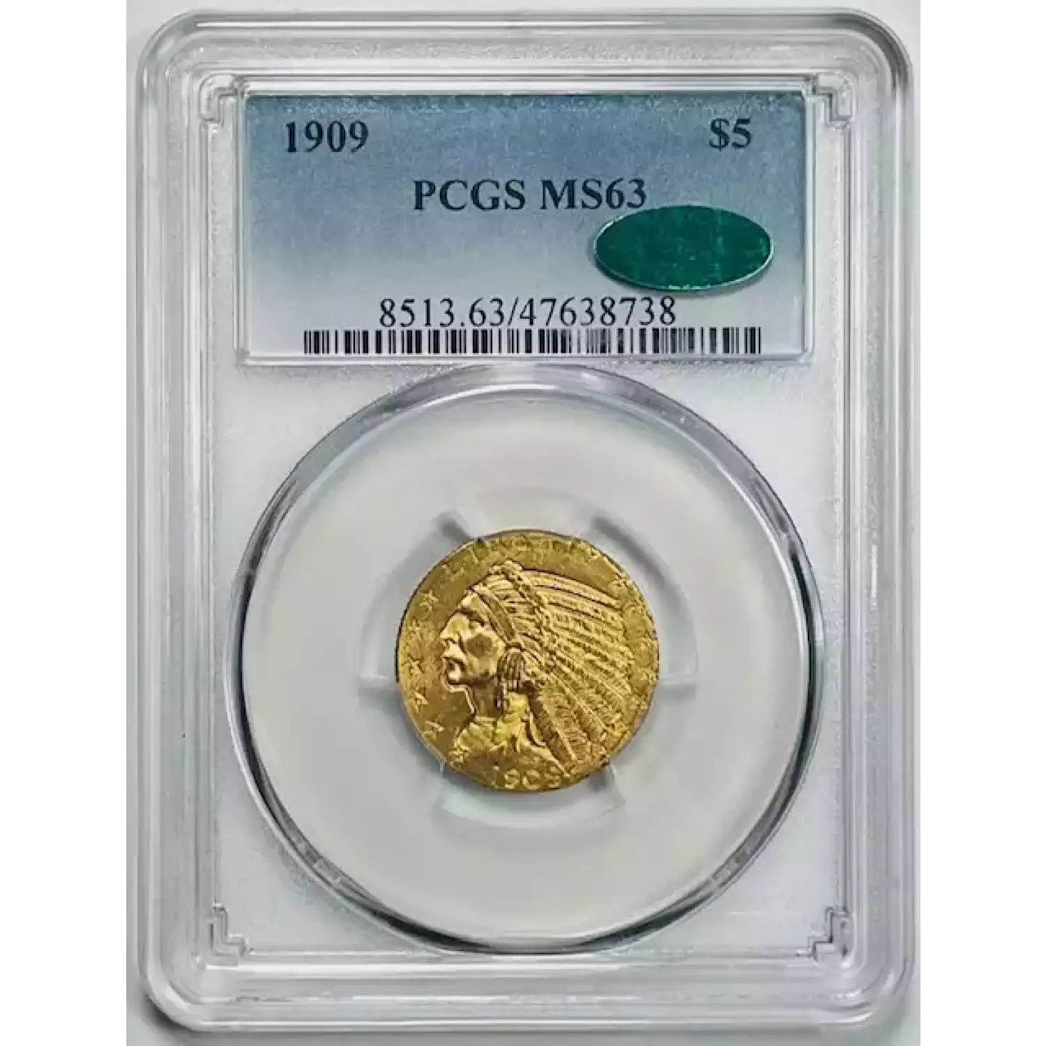 1909 Gold Half Eagles $5 Indian Head PCGS MS-63 Very Low CAC Pop!