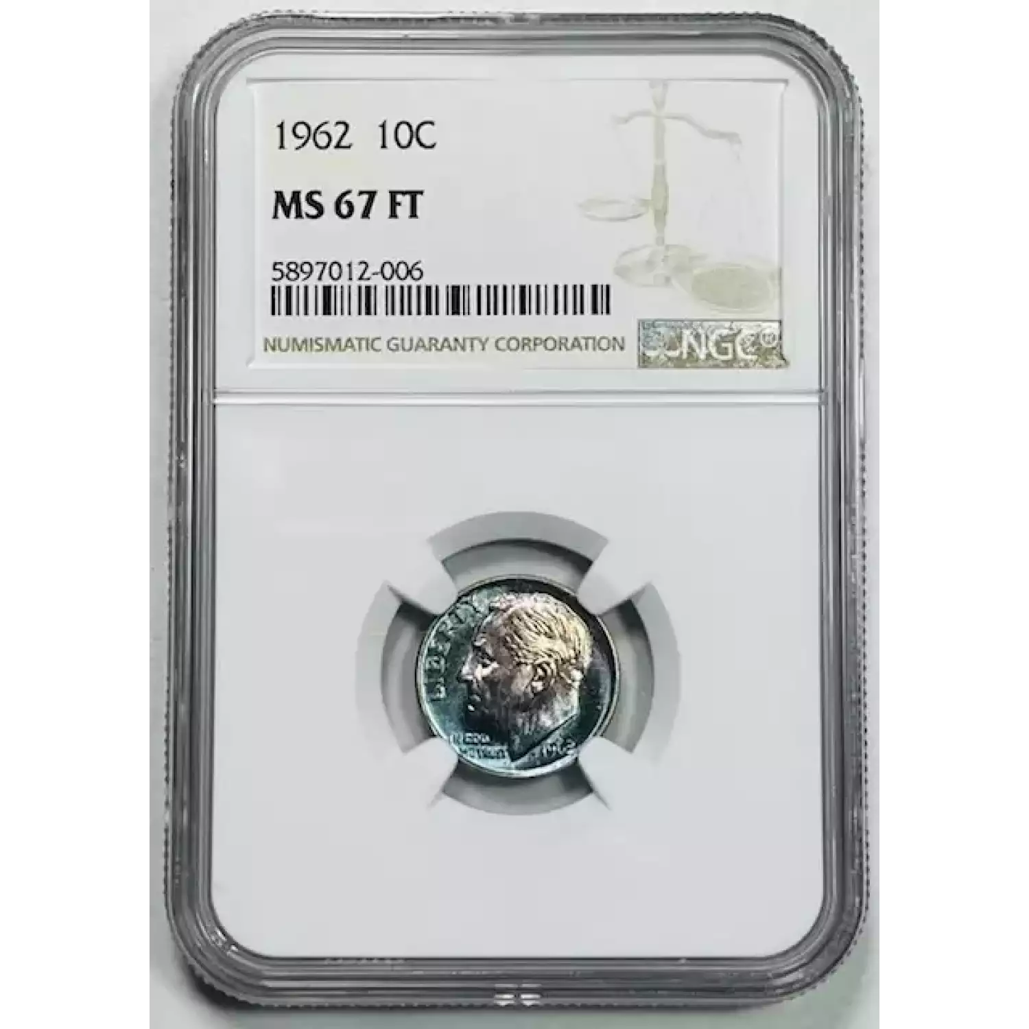 1962 Dimes Roosevelt NGC MS-67 FT Blue Toning!